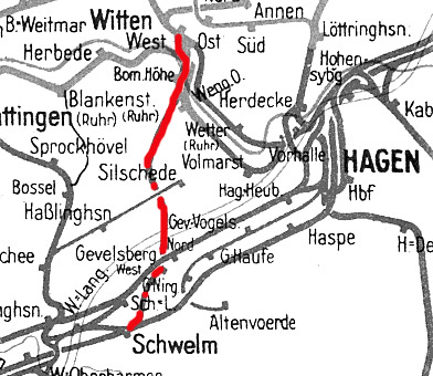 Witten Hbf 0,0 - Gevelsberg West 15,47 - Schwelm 19,70 (1946/1951)