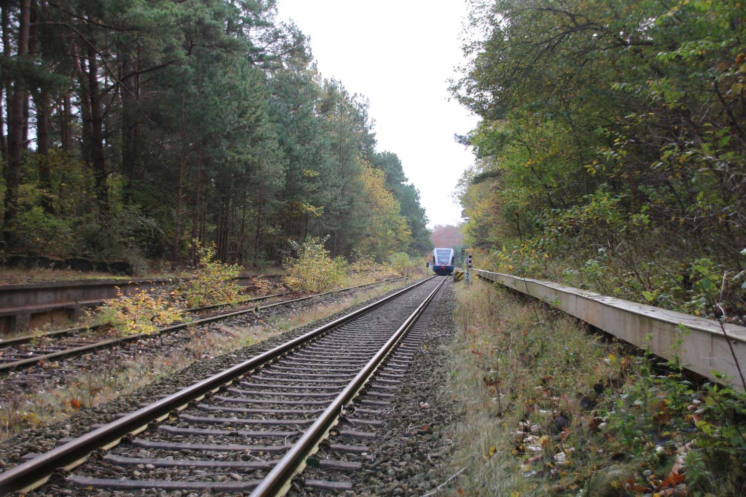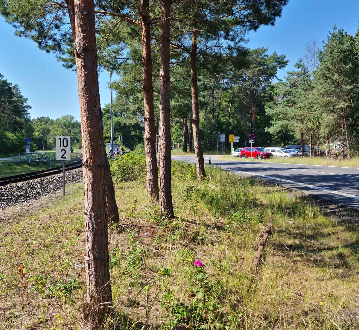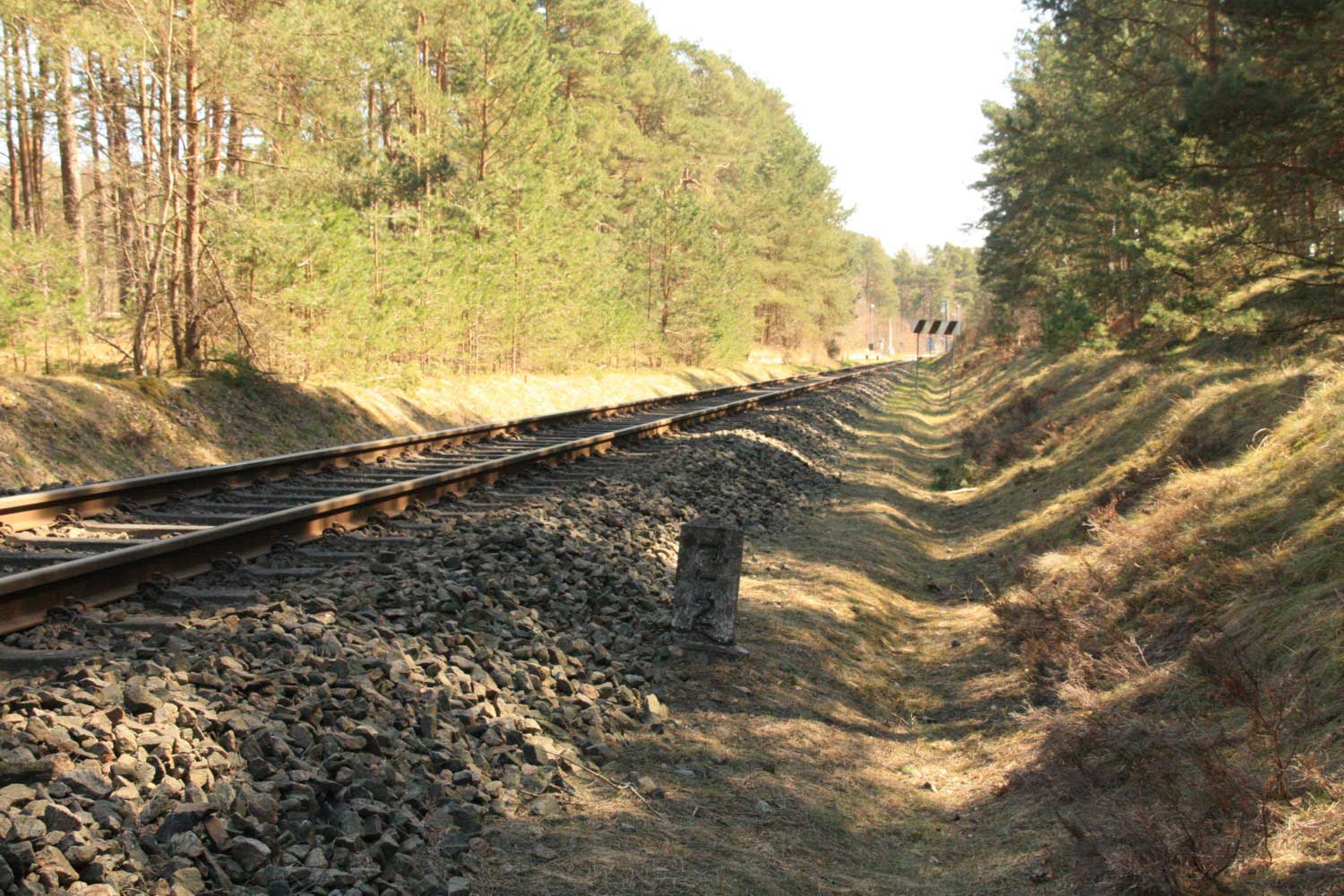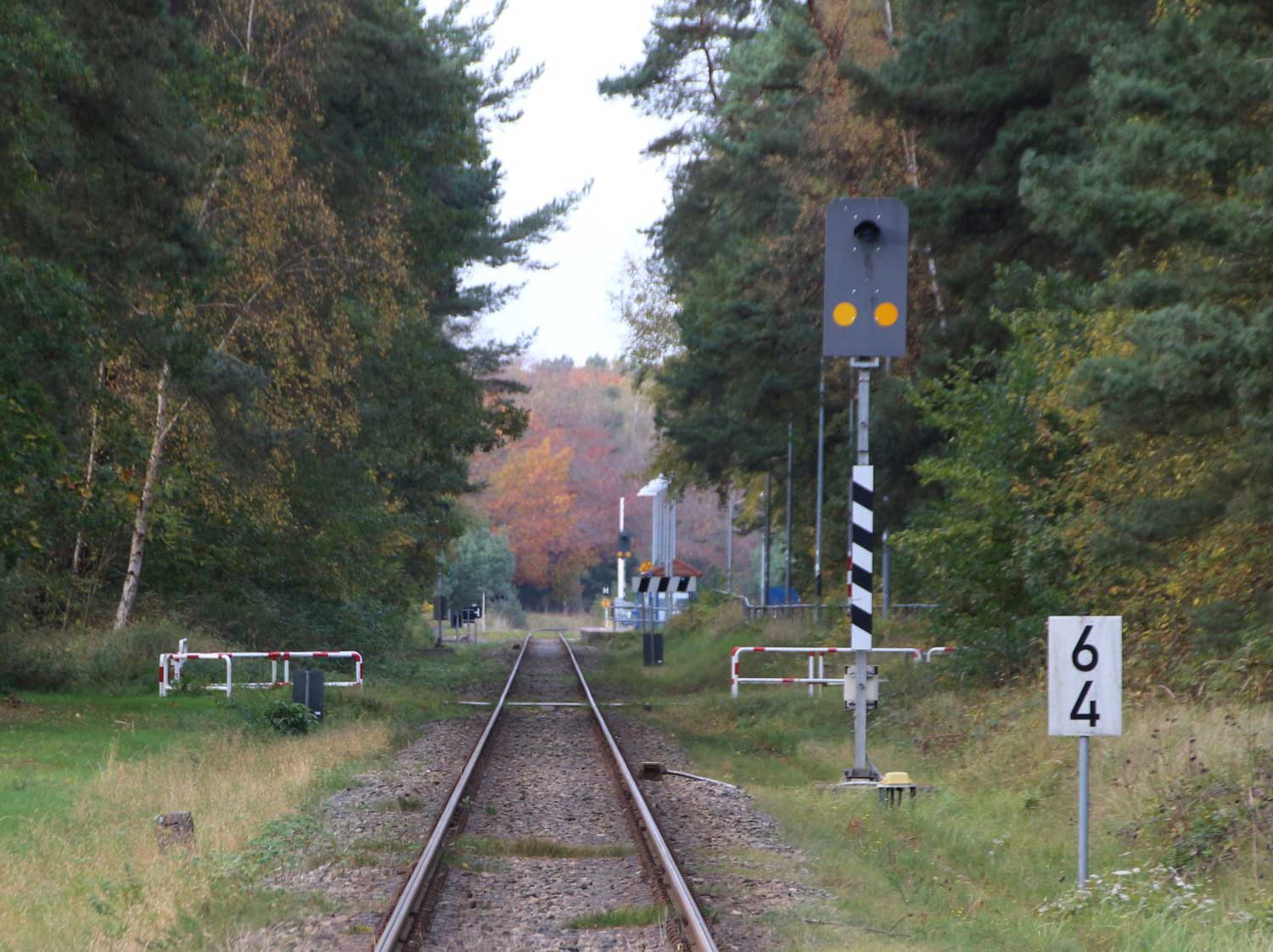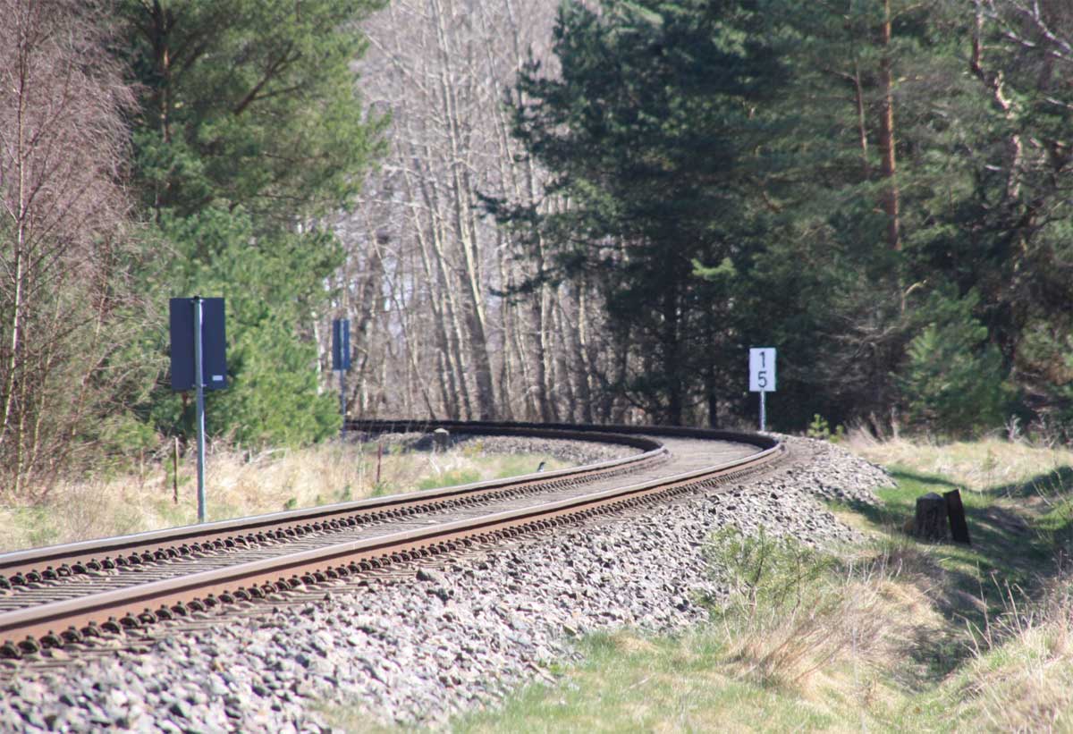 km 0,6 (Tafel links und wahrscheinlich Stein zwischen den Gleisen) in Zinnowitz