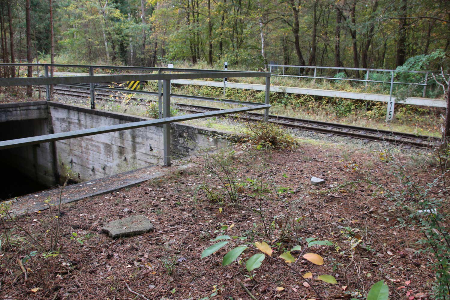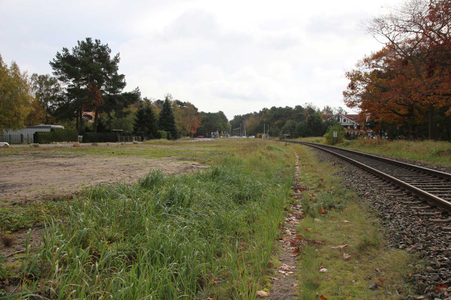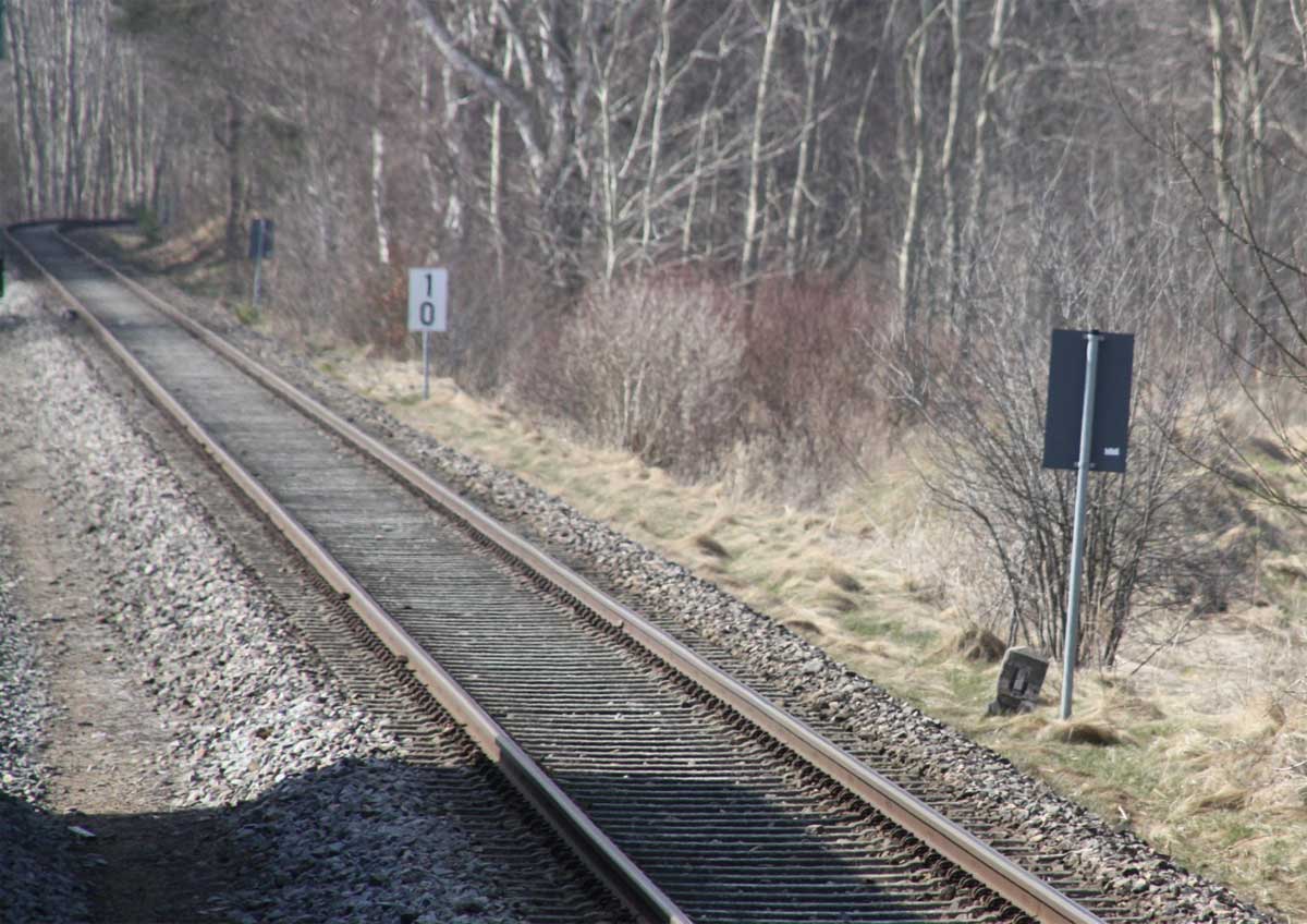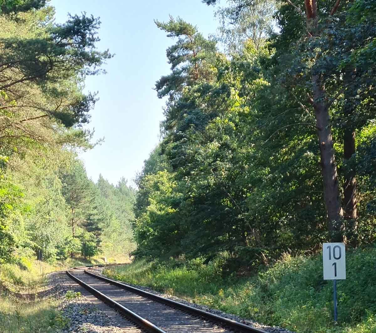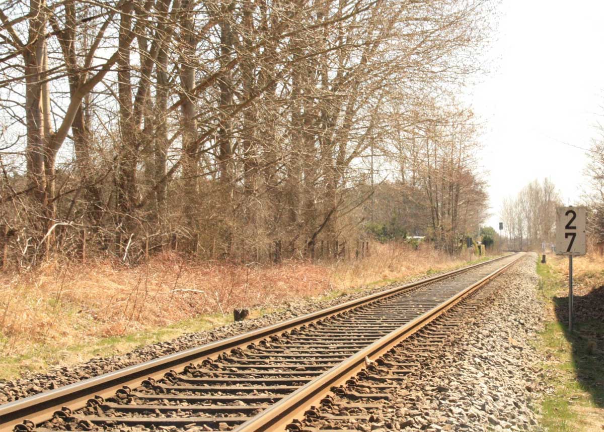 km 0,6 (Tafel links und wahrscheinlich Stein zwischen den Gleisen) in Zinnowitz