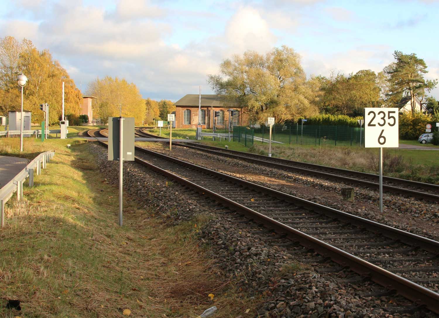km 235,6 gehört zur Strecke (Berlin Stettiner Bf -0,28) - Ducherow 163,19 - Swinemünde Hbf 200,96 - Wolgaster Fähre 243,53