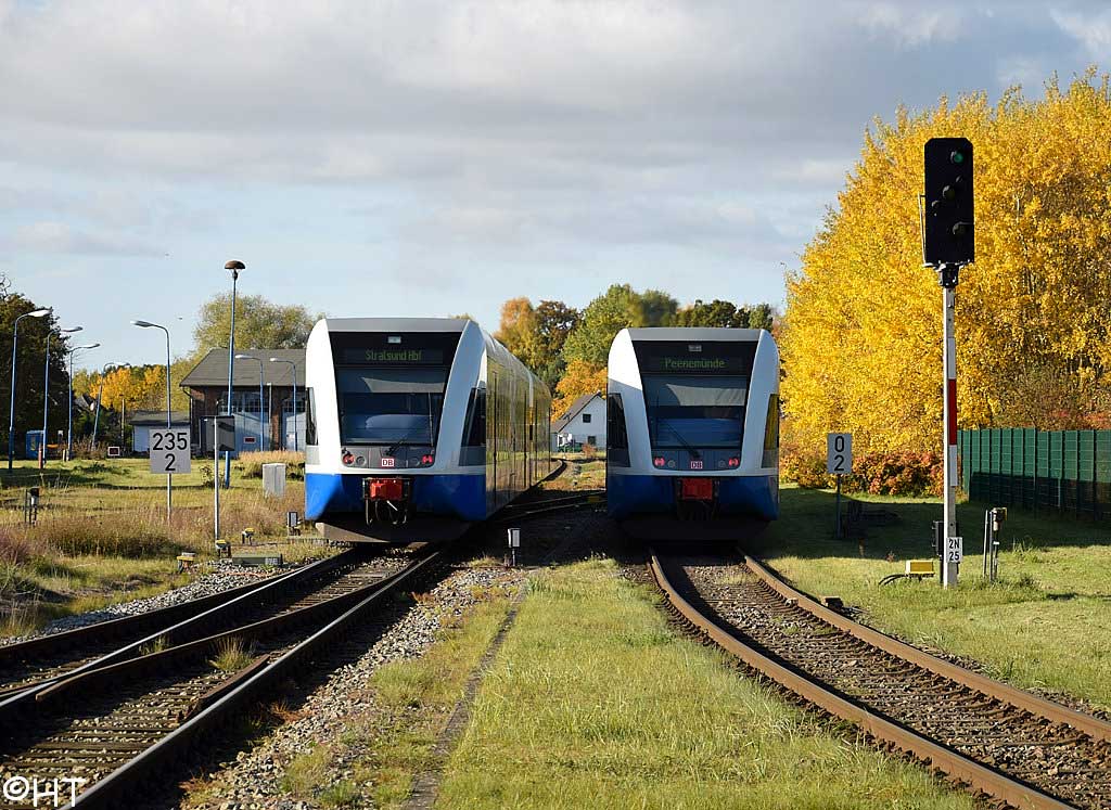 km 0,1 in Zinnowitz - 201 792 und 201 380 der UBB