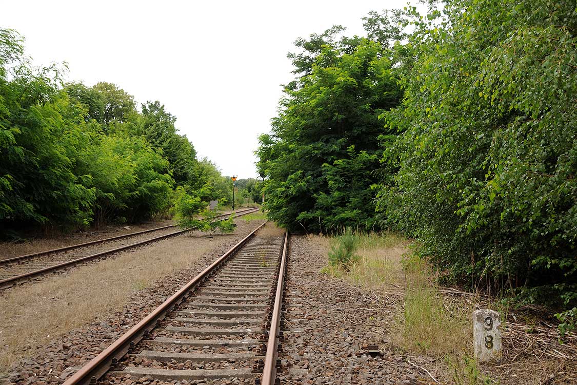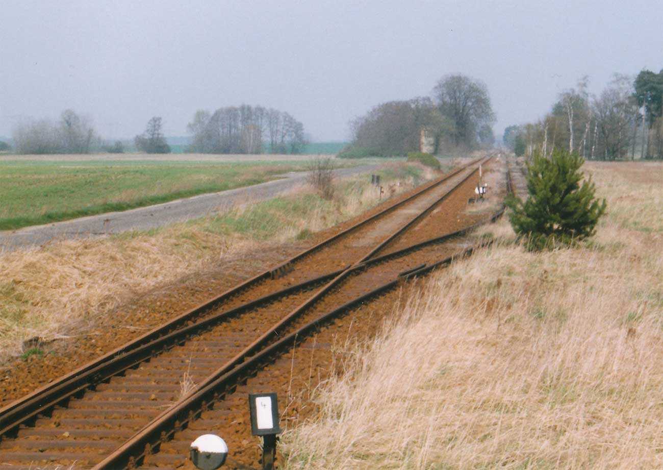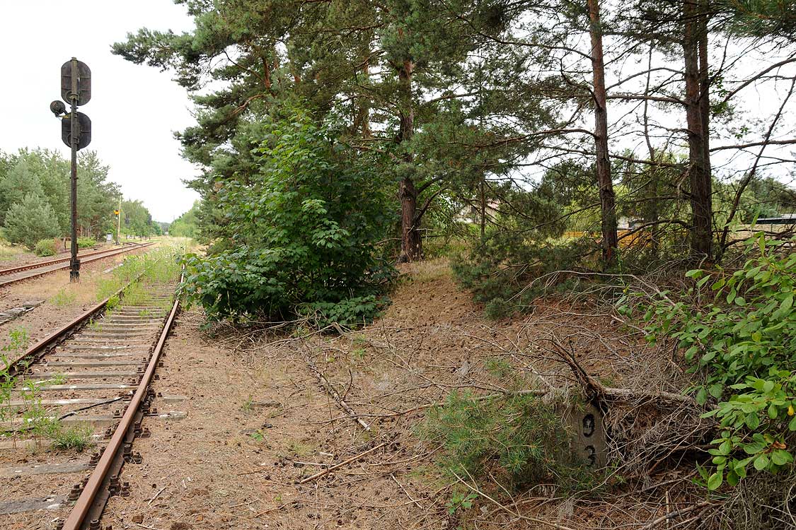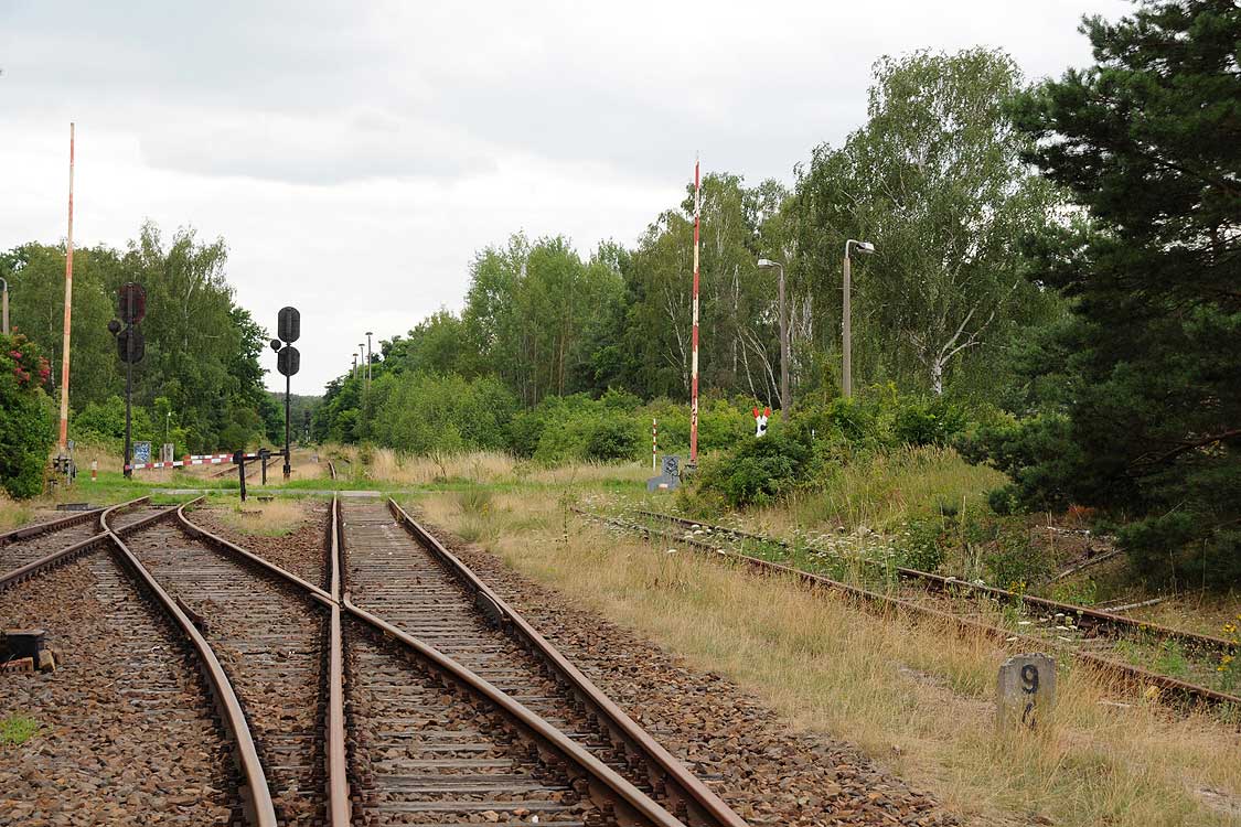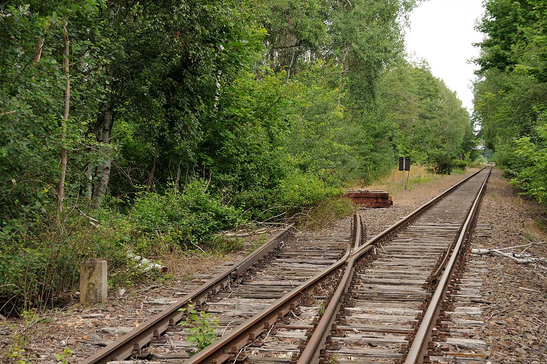 km 38,2 der Strecke [Dahme (Mark) Klbf 0,0] - Hohenseefeld 10,87 - Jüterbog 38,2 (Jüterbog-Luckenwalder Kreiskleinbahnen) Spurweite 750 mm |