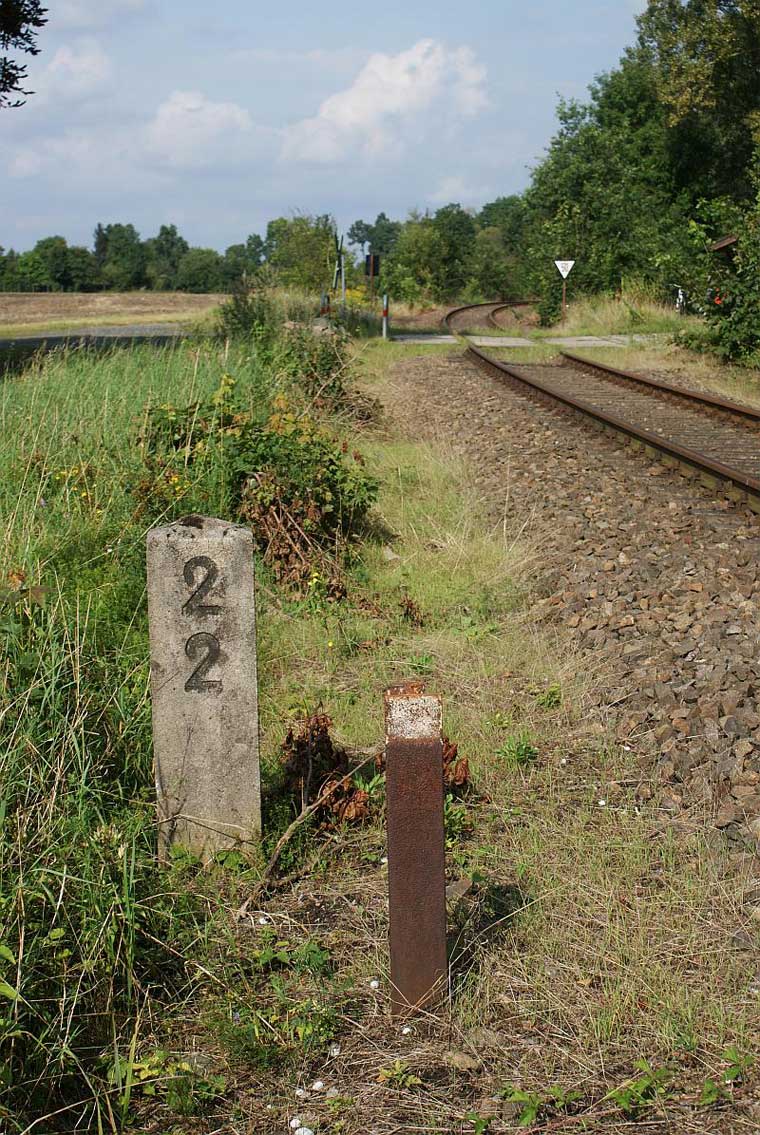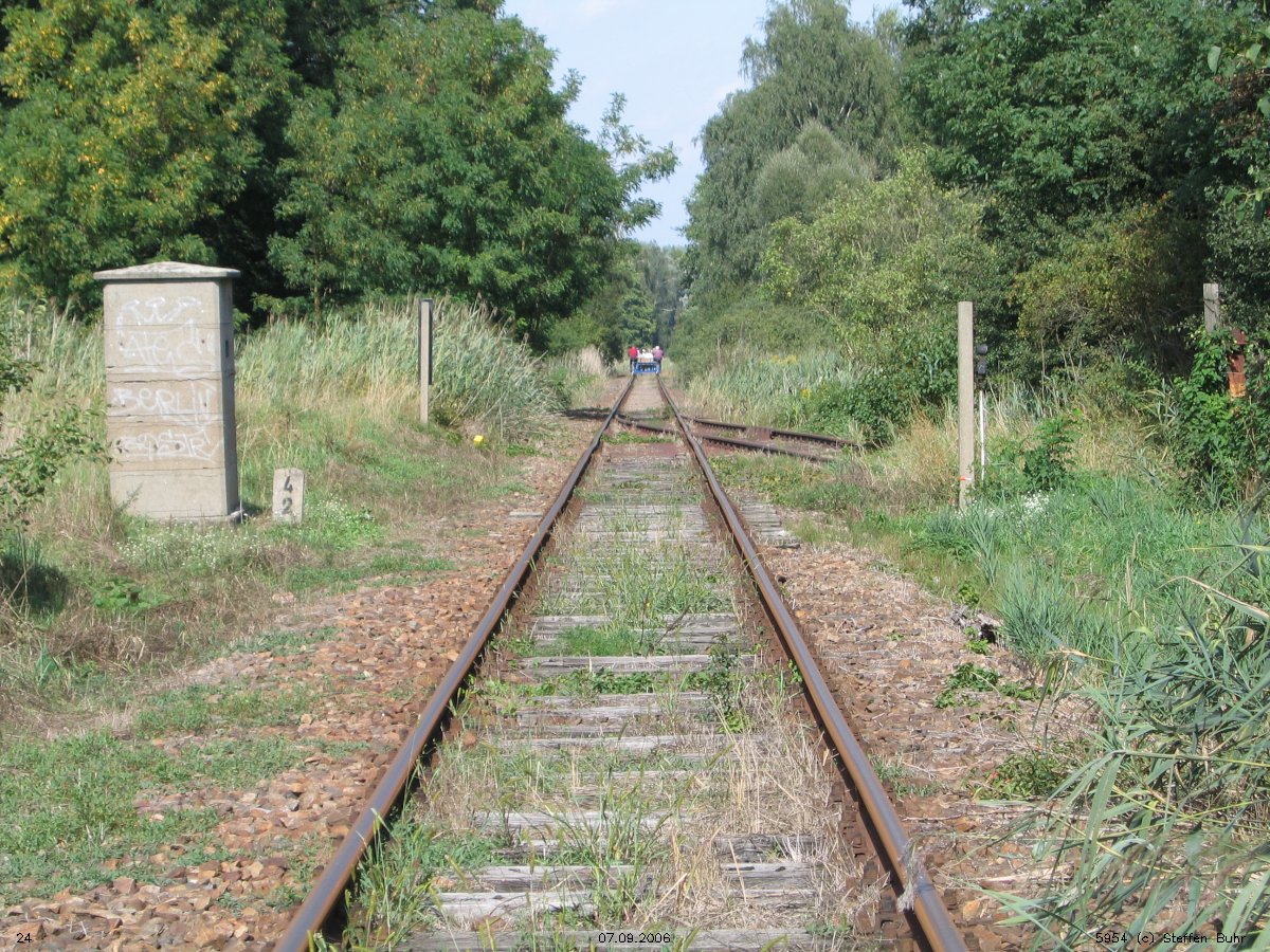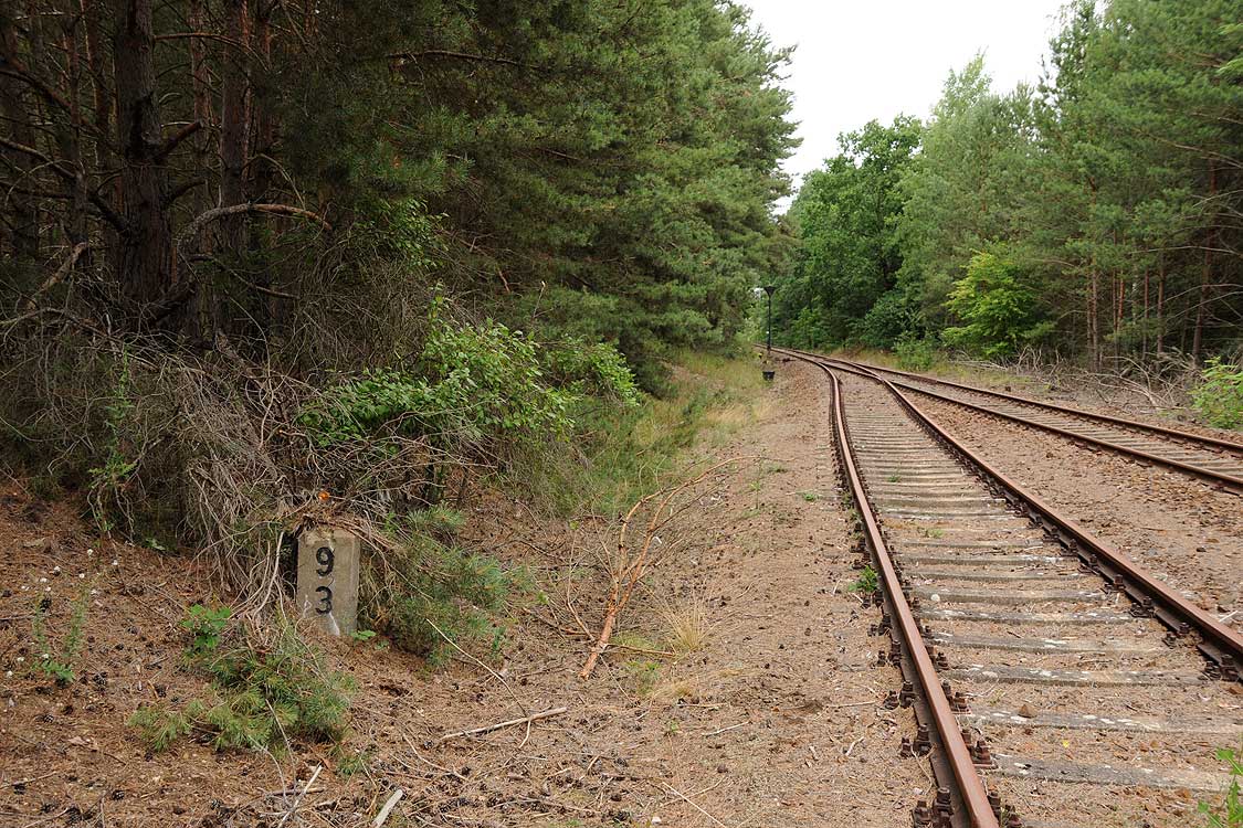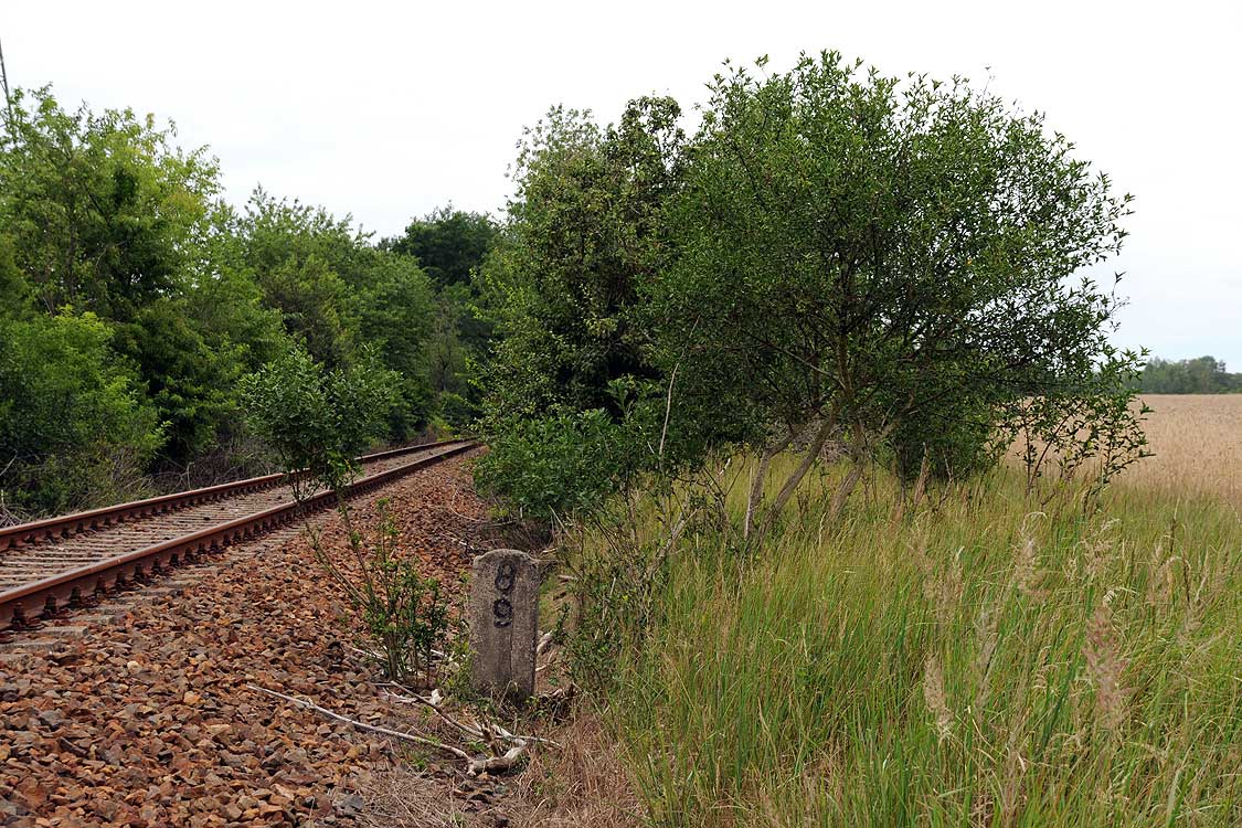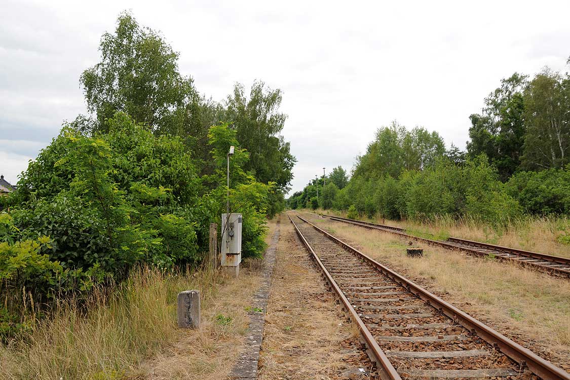 km 38,2 der Strecke [Dahme (Mark) Klbf 0,0] - Hohenseefeld 10,87 - Jüterbog 38,2 (Jüterbog-Luckenwalder Kreiskleinbahnen) Spurweite 750 mm |