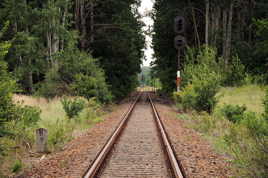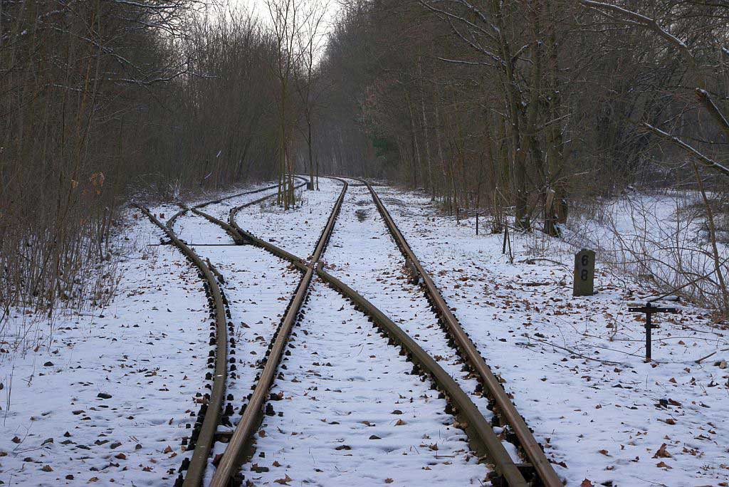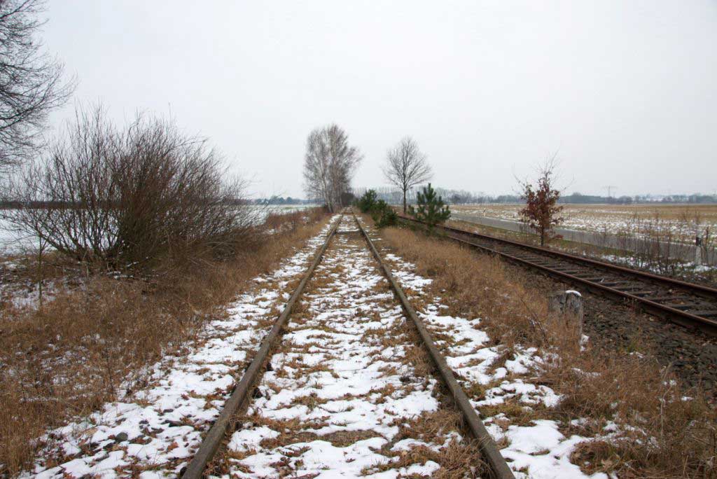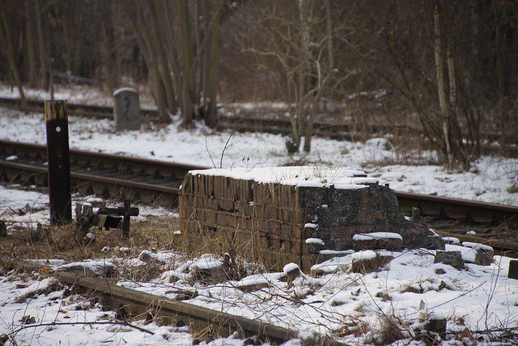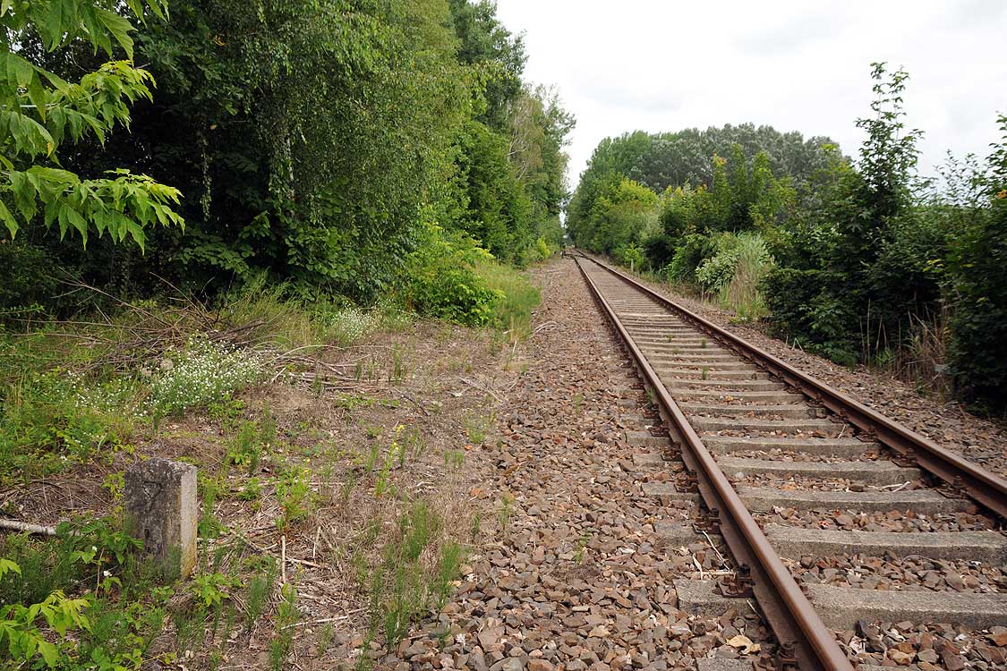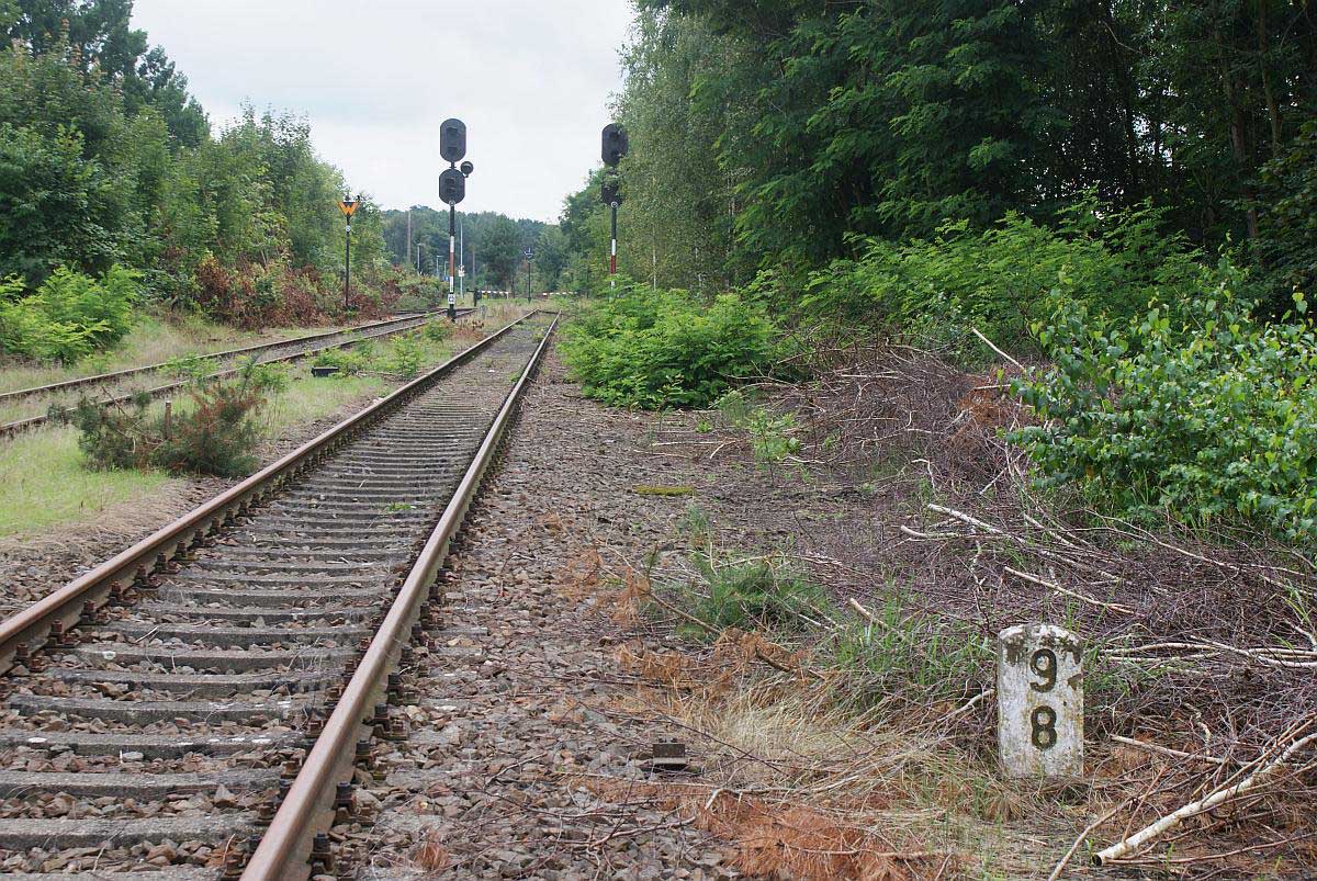 km 38,2 der Strecke [Dahme (Mark) Klbf 0,0] - Hohenseefeld 10,87 - Jüterbog 38,2 (Jüterbog-Luckenwalder Kreiskleinbahnen) Spurweite 750 mm |