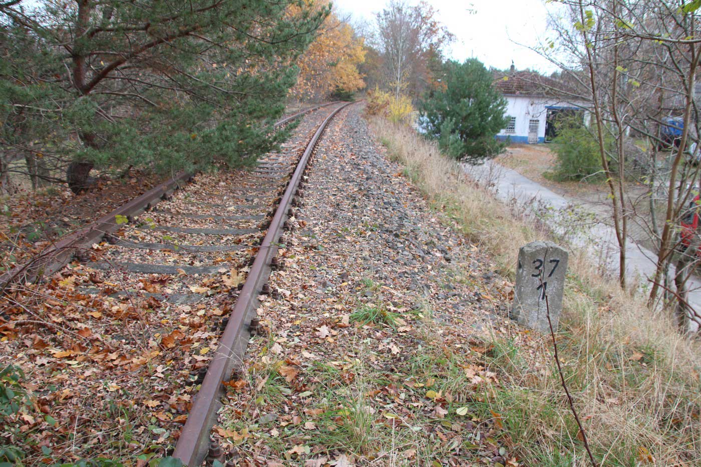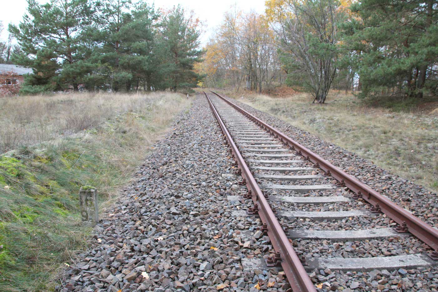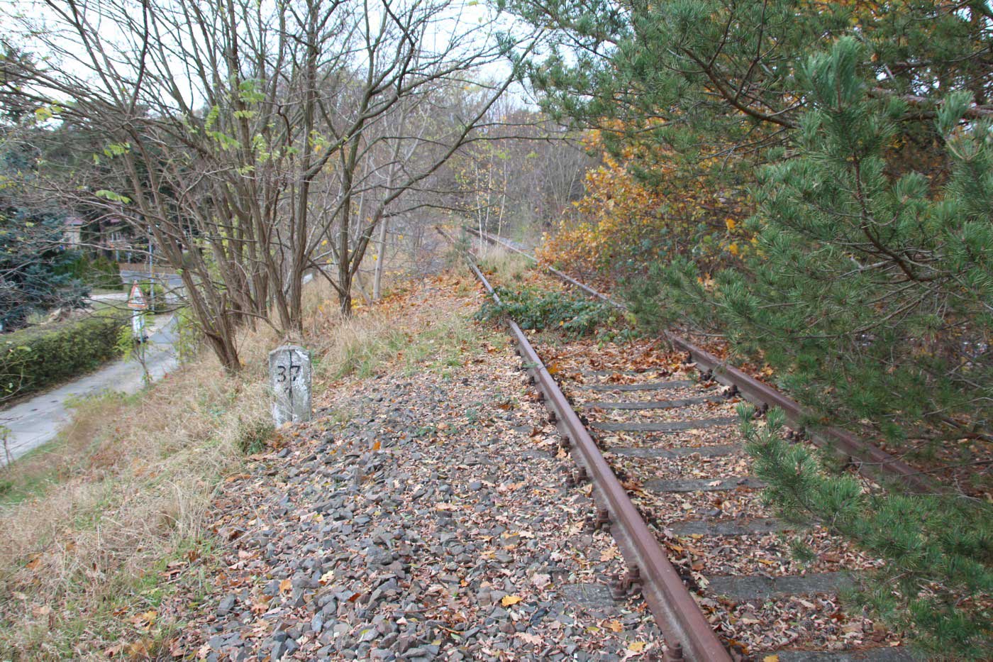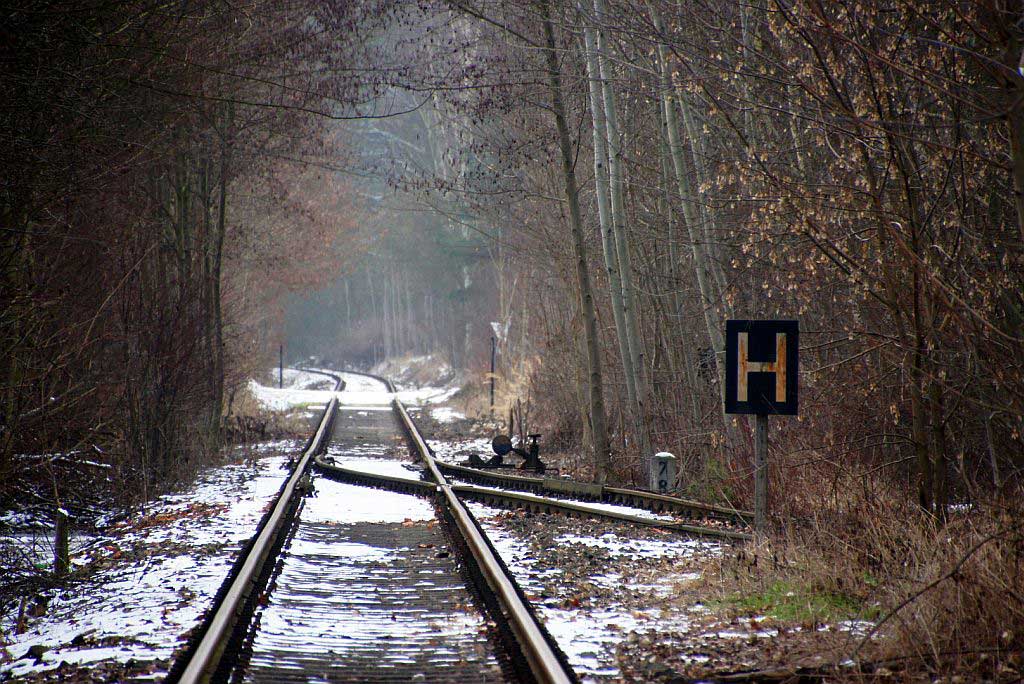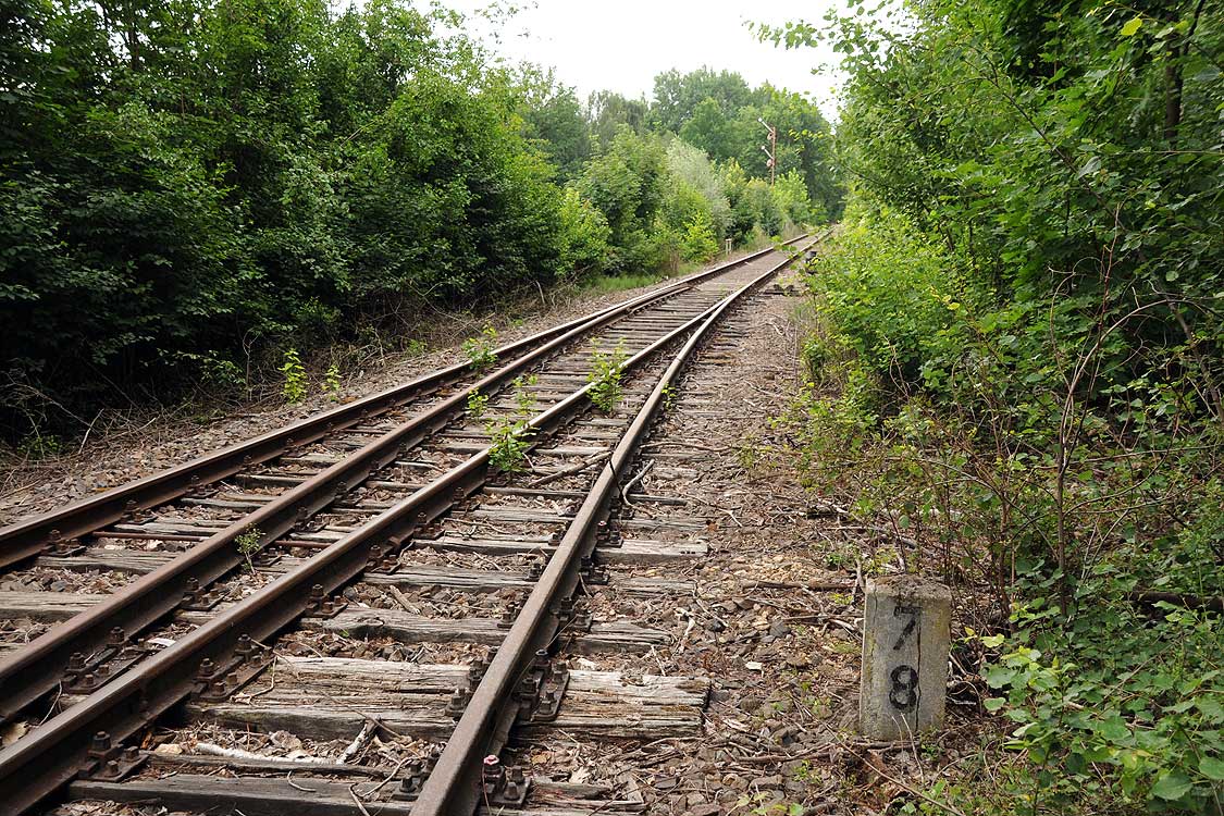 km 38,2 der Strecke [Dahme (Mark) Klbf 0,0] - Hohenseefeld 10,87 - Jüterbog 38,2 (Jüterbog-Luckenwalder Kreiskleinbahnen) Spurweite 750 mm |