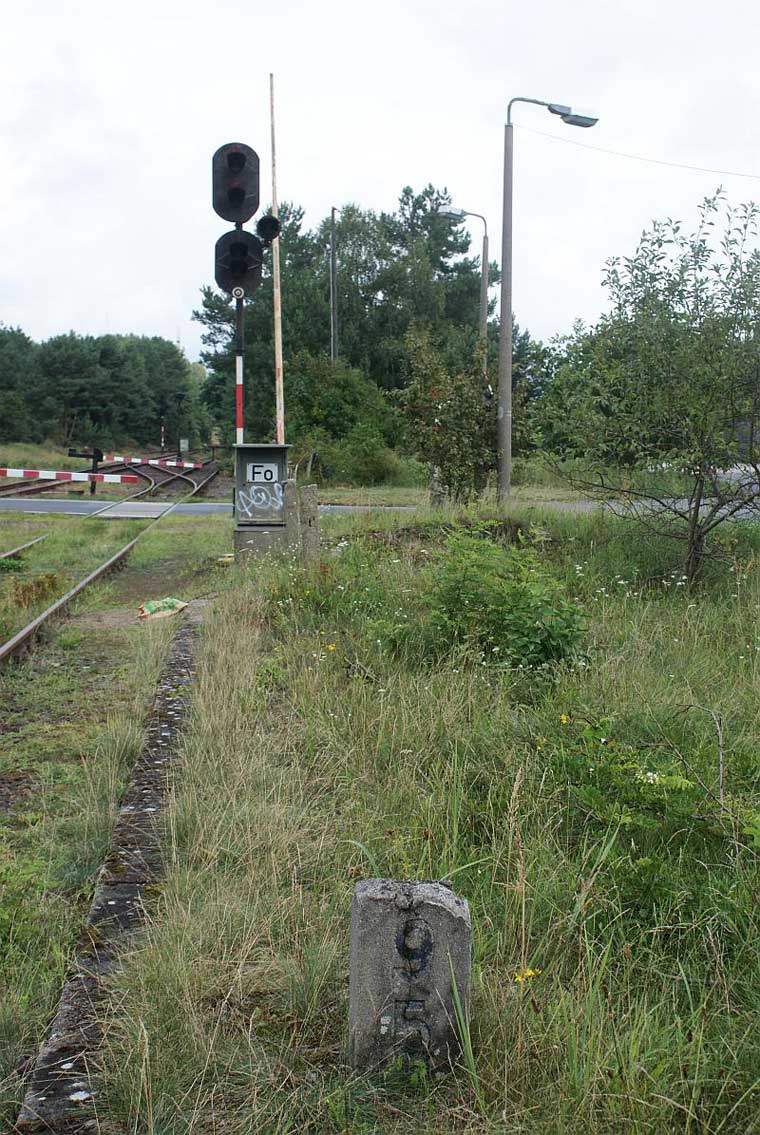 km 0,0 der Strecke Jüterbog 0,0 - Beelitz Stadt 40,01 - Wildpark 58,78 - Wustermark 80,4 - Nauen 90,07 |
