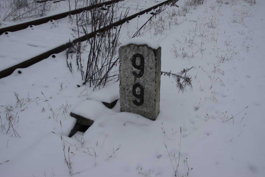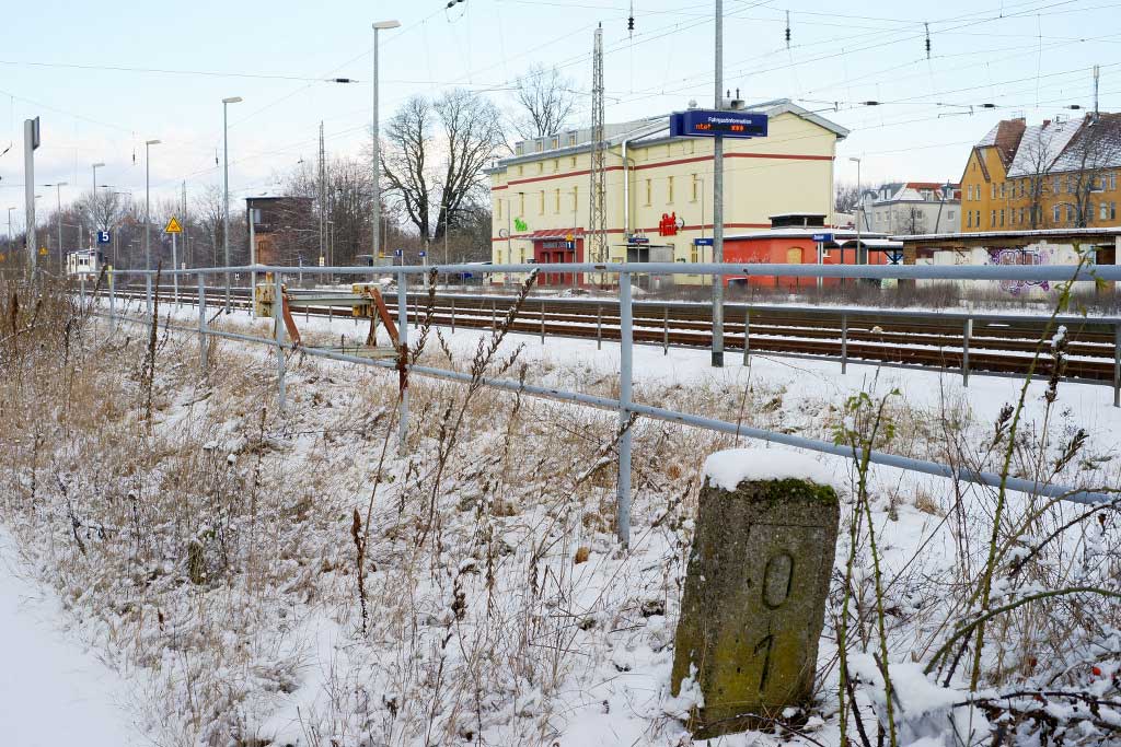 km 0,0 der Strecke Jüterbog 0,0 - Beelitz Stadt 40,01 - Wildpark 58,78 - Wustermark 80,4 - Nauen 90,07 | ||