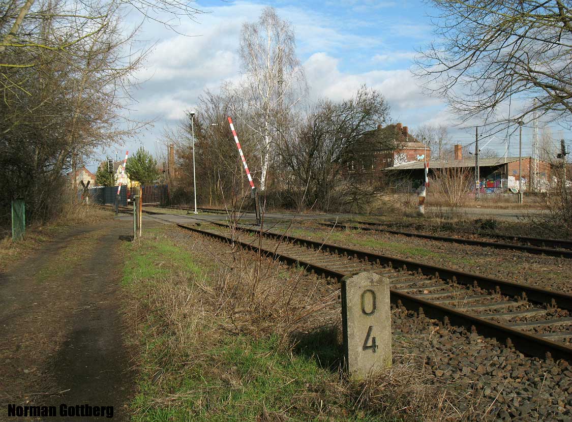 Jüterbog | 40,70 | km 62,82 der Strecke Berlin Anhalter Bf -0,07 - Grenze Berlin West/DDR 12,38 - Jüterbog 62,82 - Lutherstadt Wittenberg 94,76 - Überlänge (502 m) km 127,200 + 702 m = km 127,400 - Bitterfeld 131,64 - Halle (Saale) Hbf 161,64 |