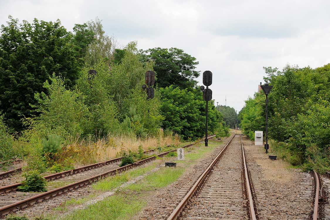 Zossen | 0,0 | km 32,74 der Strecke Berlin Anhalter Bf (bis 1882 Berlin Dresdner Bf) 0,01 - Lichterade 13,77 - Streckenende 14,9 - (Streckenunterbrechung) - Mahlow 16,83 - Uckro 75,99 - Elsterwerda 122,75 |