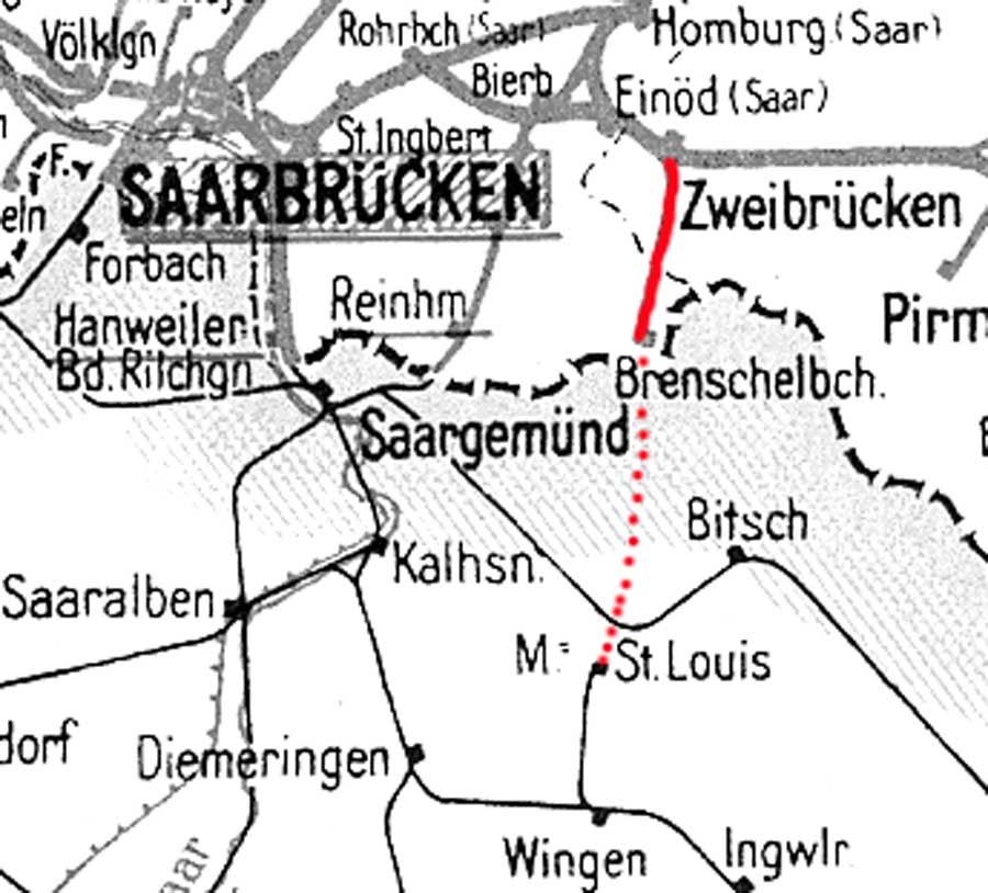 Zweibrücken Hbf 0,0 - Brenschelbach 13,10 - [Staatsgrenze 13,305 (auchAngabe