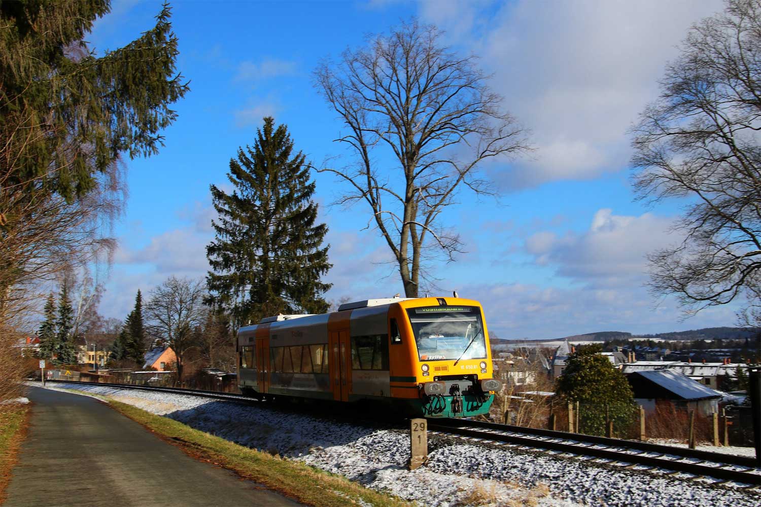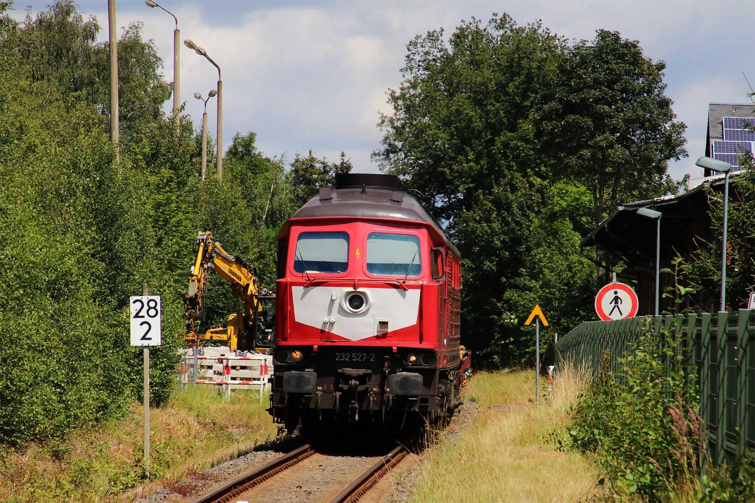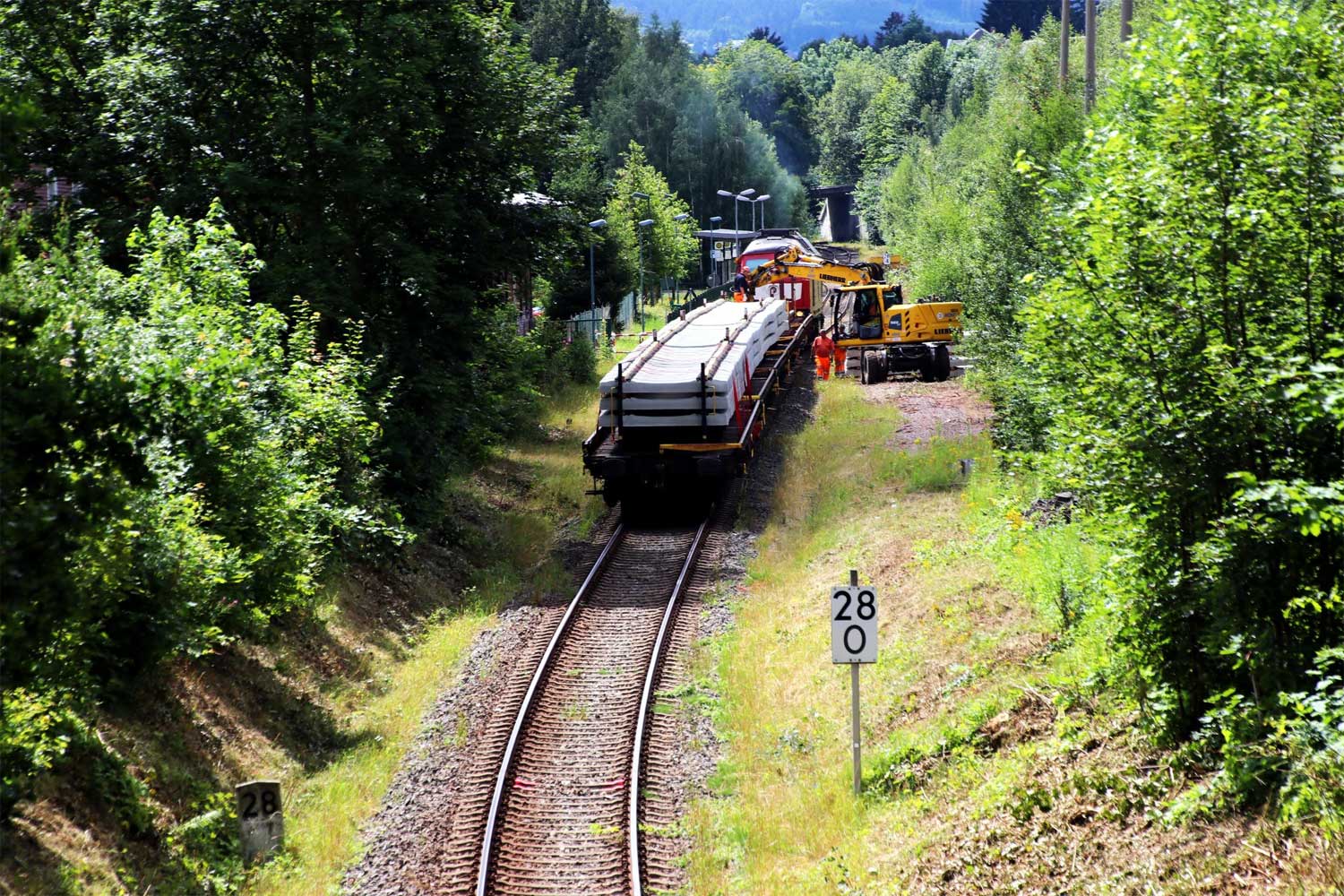 km 28,0 (Stein und Tafel) in Auerbach (Vogtl) unt Bf - Blick Richtung Falkenstein (Vogtl)