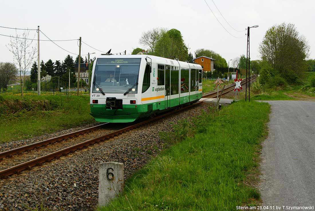 Falkenstein (Vogtl) | 33,21 | km 22,27 der Strecke Herlasgrün 0,22 - Falkenstein (Vogtl) 22,27 - Lottengrün 34,08 - Oelsnitz (Vogtl) 47,29 (HOe) |