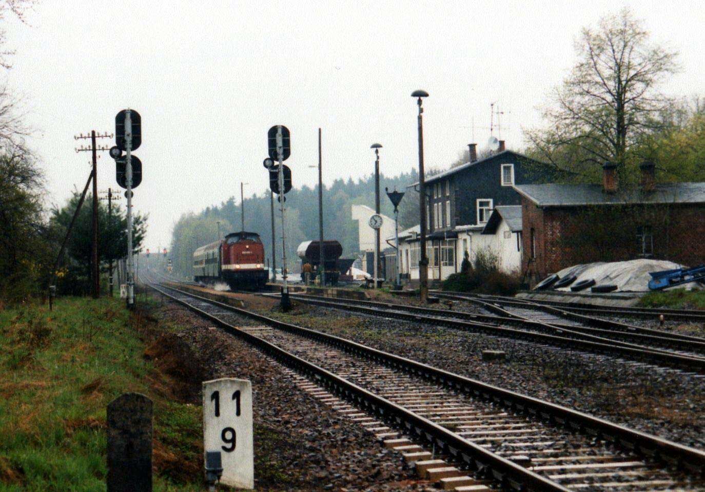 Falkenstein (Vogtl) | 33,221 | km 22,27 der Strecke Herlasgrün 0,22 - Falkenstein (Vogtl) 22,27 - Lottengrün 34,079 - [Oelsnitz (Vogtl) 47,293] (HOe) |