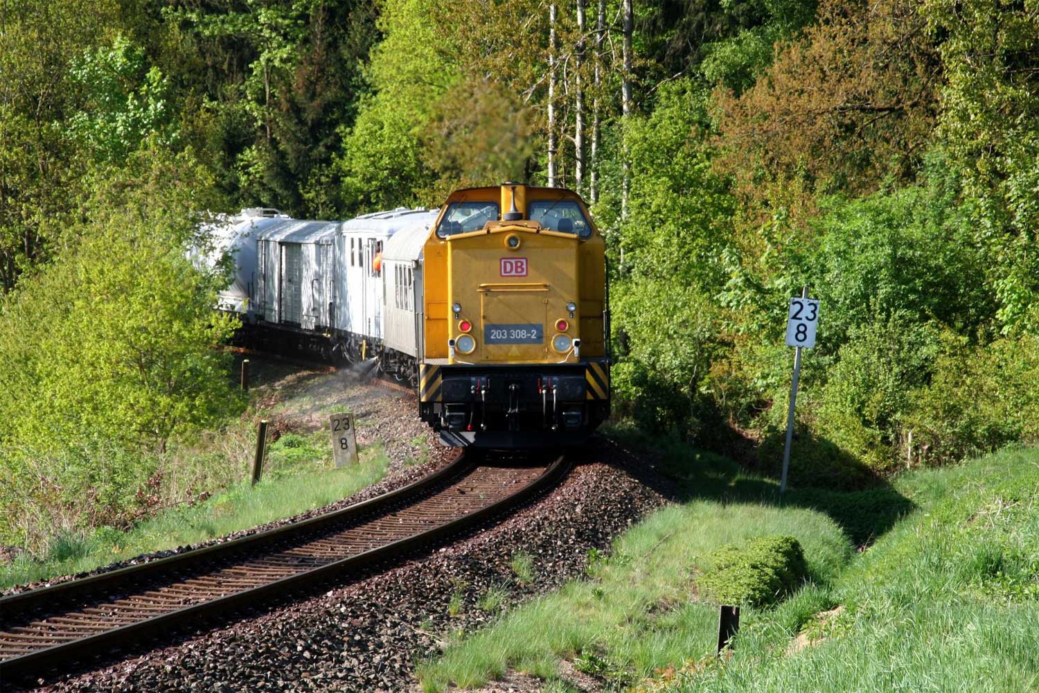 203 308 als Schlusslok und 203 315 als Zuglok am "Blümchentod"