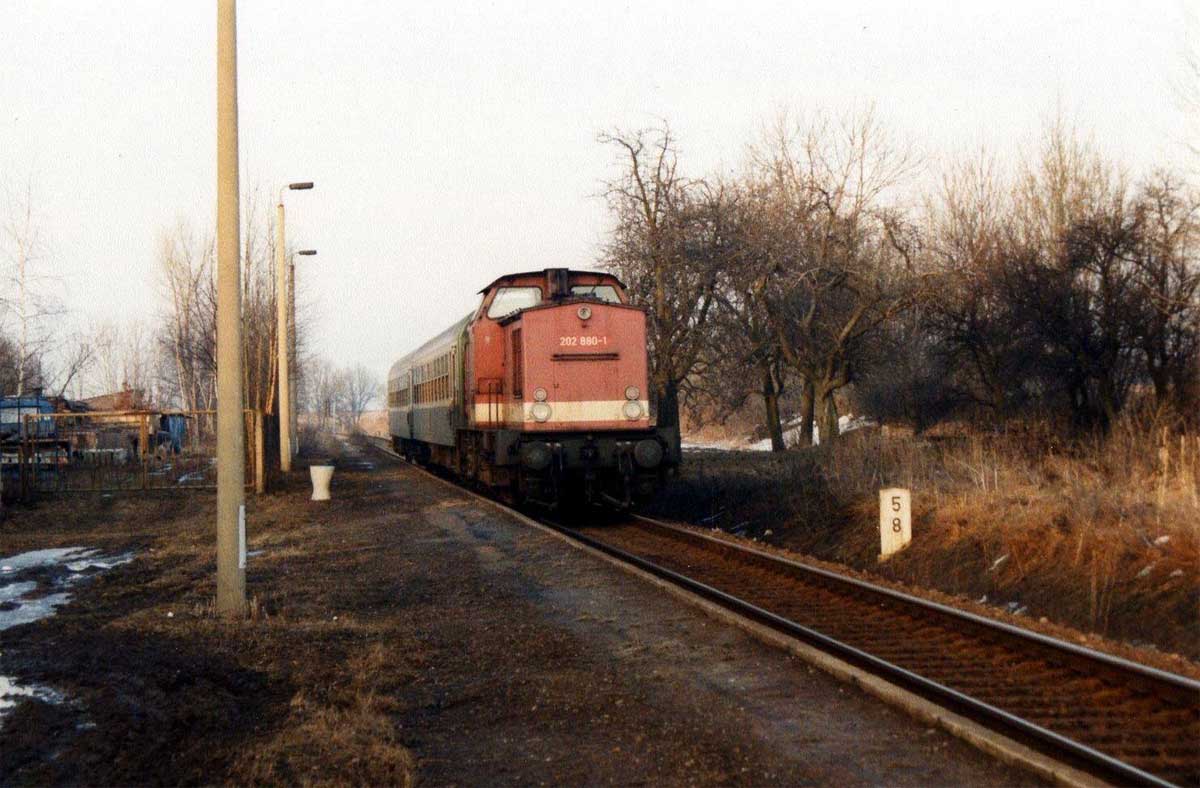 Bereits 1877 wurde ein Neubaugleis vom km 4,4 über Planitz fertig, das einen großen Bogen beschreibend, etwa bei 130,44 in die Strecke DW (Dresden - Werdau) mündete.