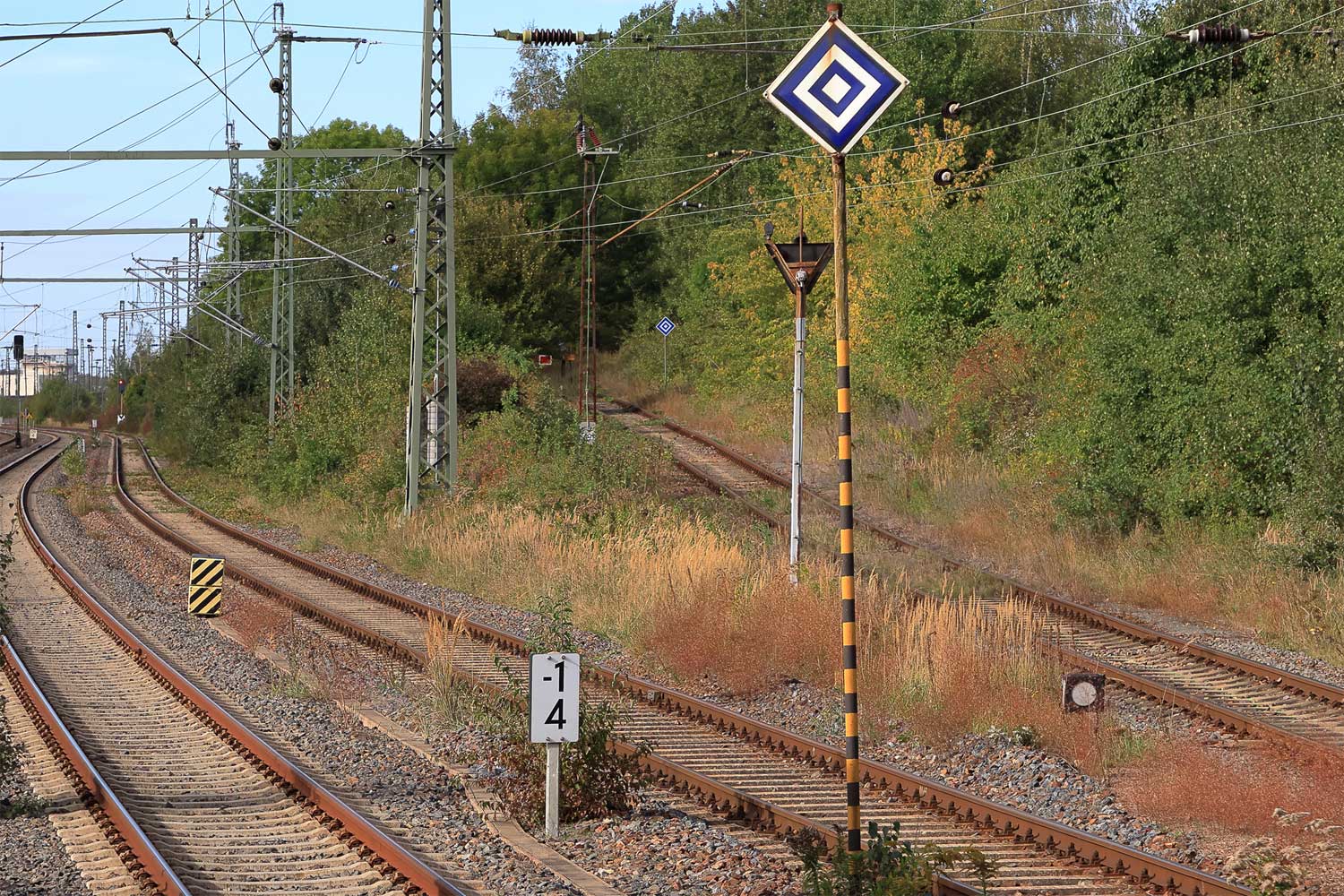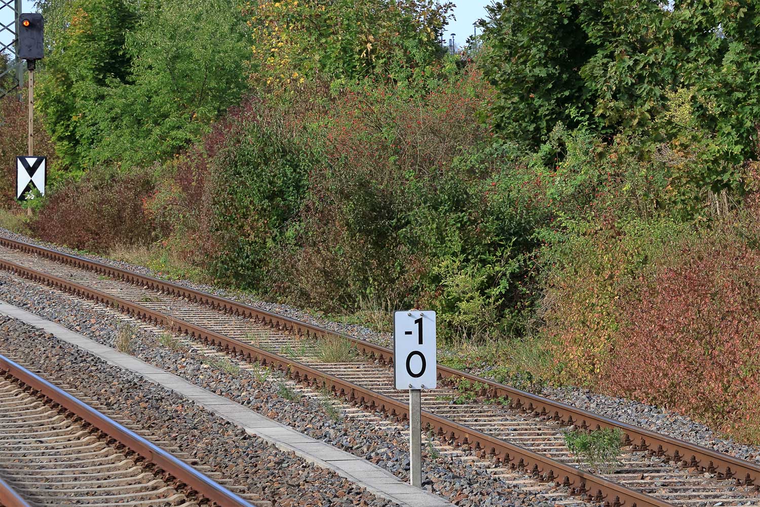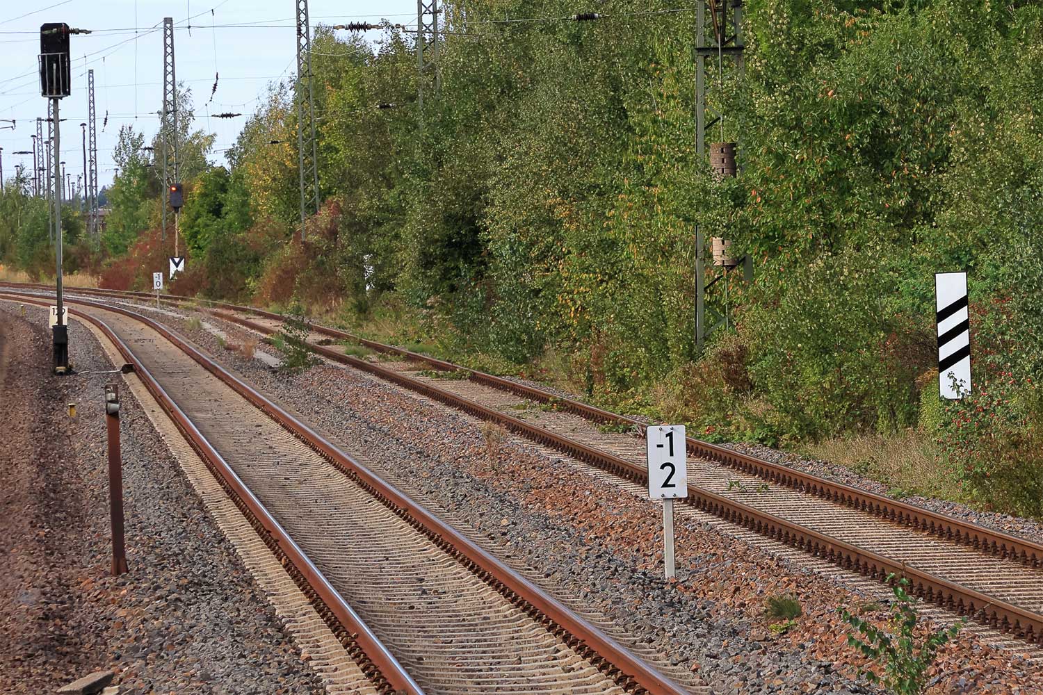 Rechts km 129,8 der Strecke Dresden Hbf -0,048 - Chemnitz Hbf 79,73 - Zwickau (Sachs) Hbf 128,35 - Abzw. Werdau Bogendreieck (Neumarker Spitze) 136,23 (DW)