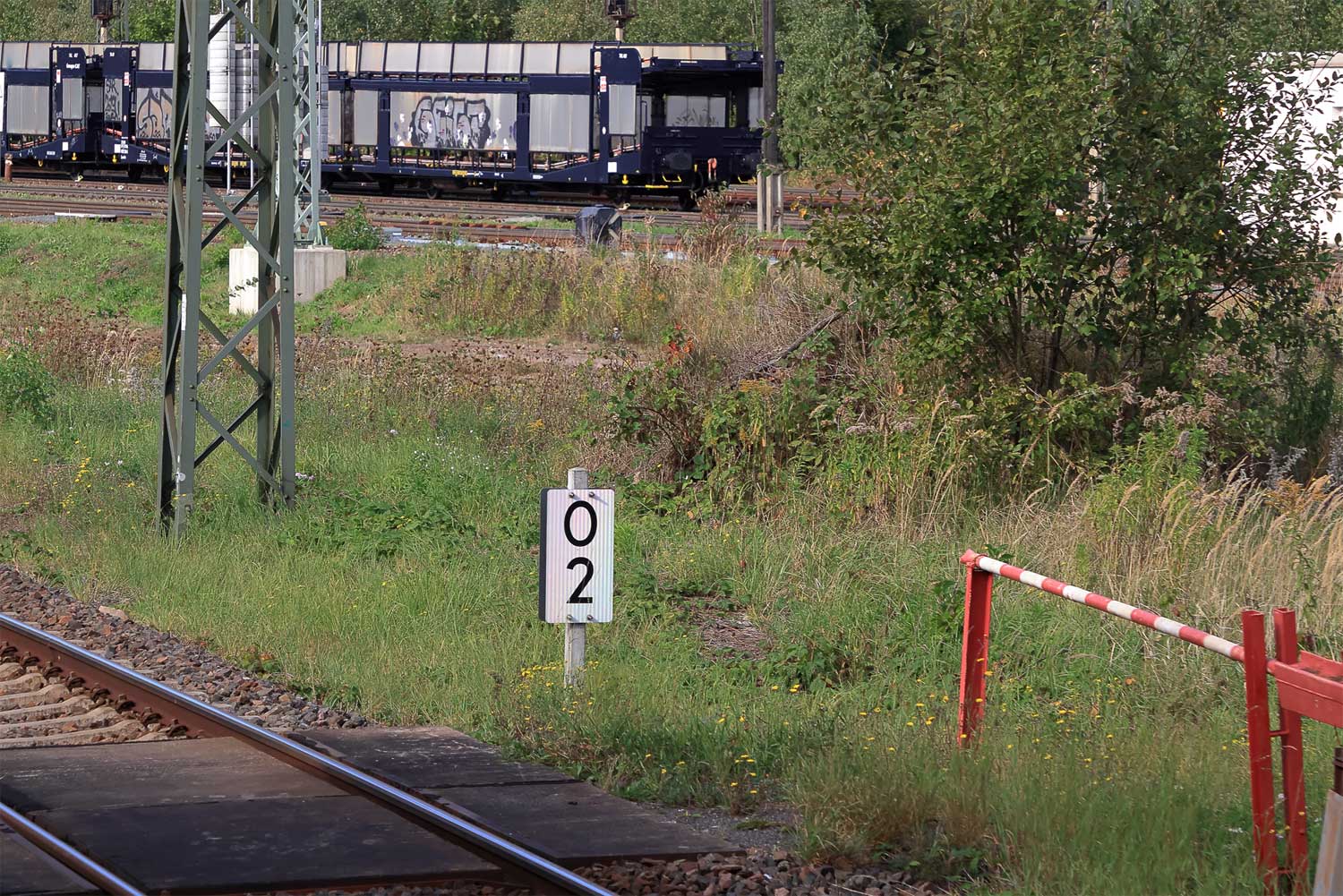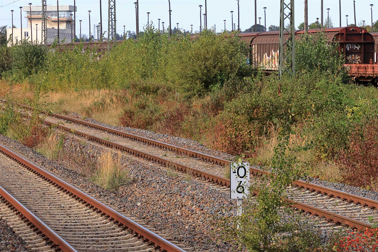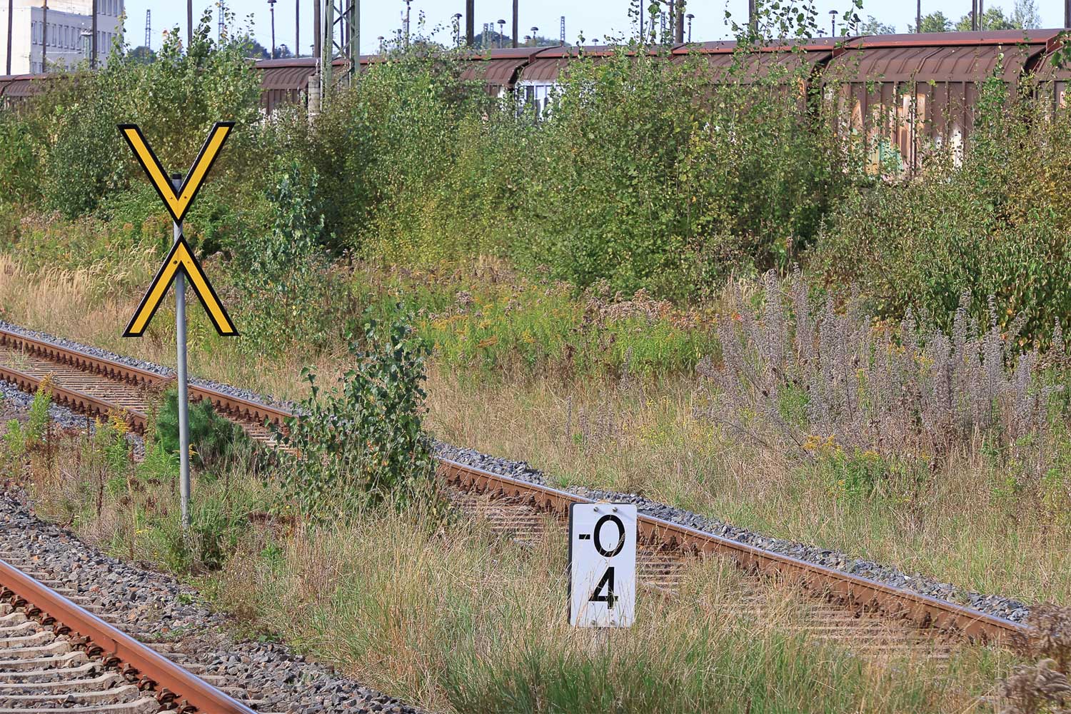 Rechts km 129,8 der Strecke Dresden Hbf -0,048 - Chemnitz Hbf 79,73 - Zwickau (Sachs) Hbf 128,35 - Abzw. Werdau Bogendreieck (Neumarker Spitze) 136,23 (DW)