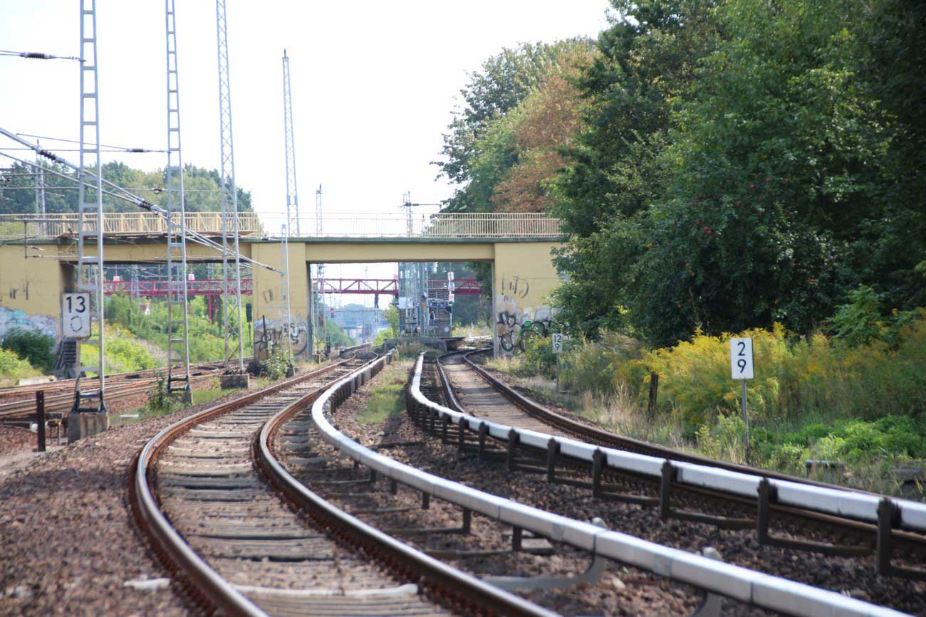 Im Vordergrund die Gleise des Berliner Außenringes (BAR)