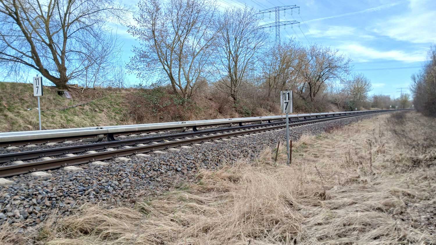 km 9,4 und km 9,5 (Gegenrichtungsgleis) zwischen Abzweig von Strecke 6011 und Gehrenseestraße - Blick Richtung Abzw