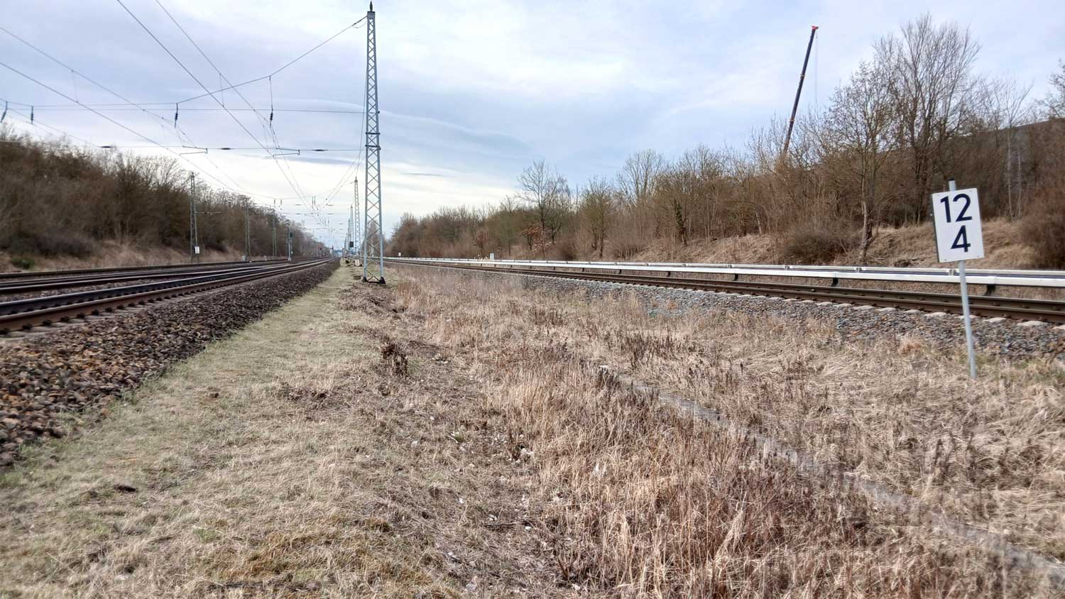 Rechts der Berliner Außenring (BAR-Streckenabschnitt 6067) mit km3,0