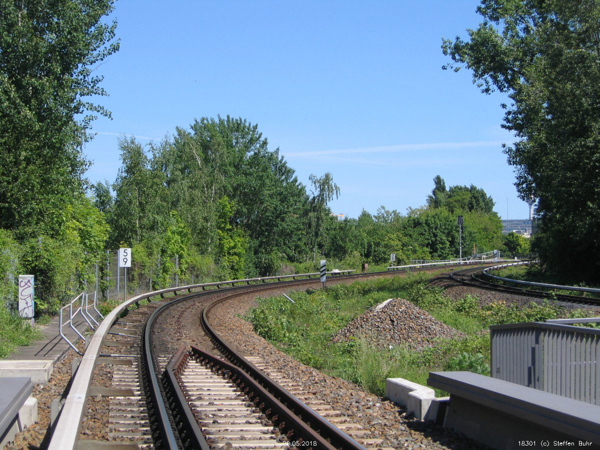 Julius-Leber-Brücke SB Links das ehemalige Gleis der Stammbahn