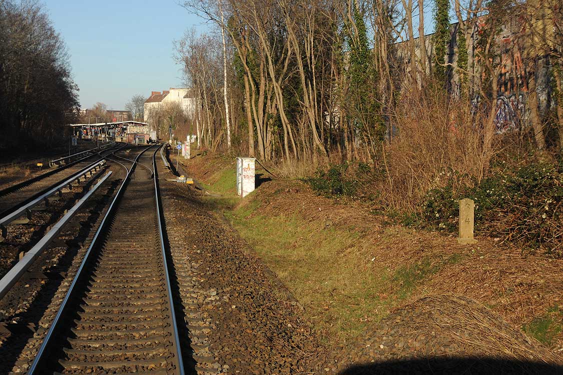 Blick Richtung Berlin Links das ehemalige Gleis der Stammbahn