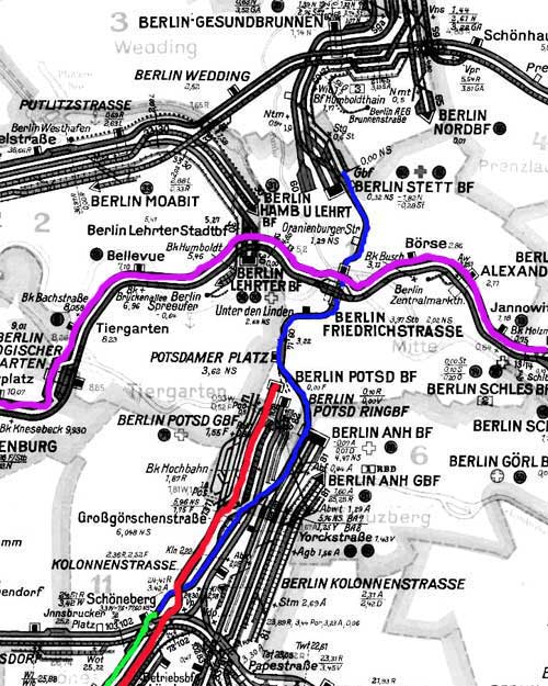 Strecke 6002 km 0,072 = km -0,072 - Berlin Nordbahnhof 0,32 - Berlin Friedrichstraße (Nord-Süd-Tunnel) 2,02 - Berlin Anhalter Bahnhof 4,47 - km 7,631 = km 3,253 Strecke 6033