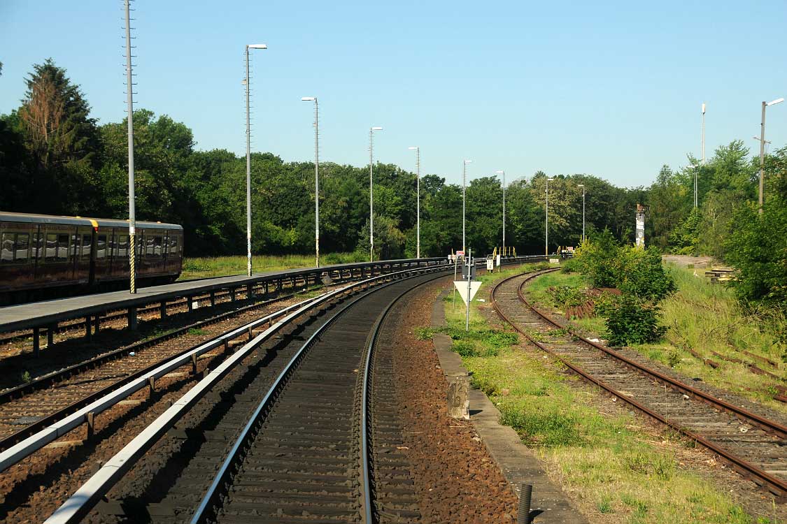 Wannseebahn. Gleichzeitig ist das der Endpunkt für die Nordsüd-S-Bahn (km 7,67).