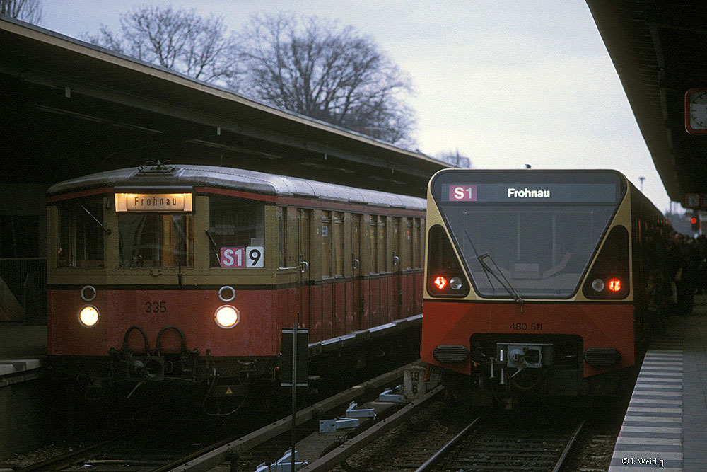 km 18,6 der Wannsebahn - 275 335 und 480 511 Foto: Ingmar Weidig, 27.02.1991