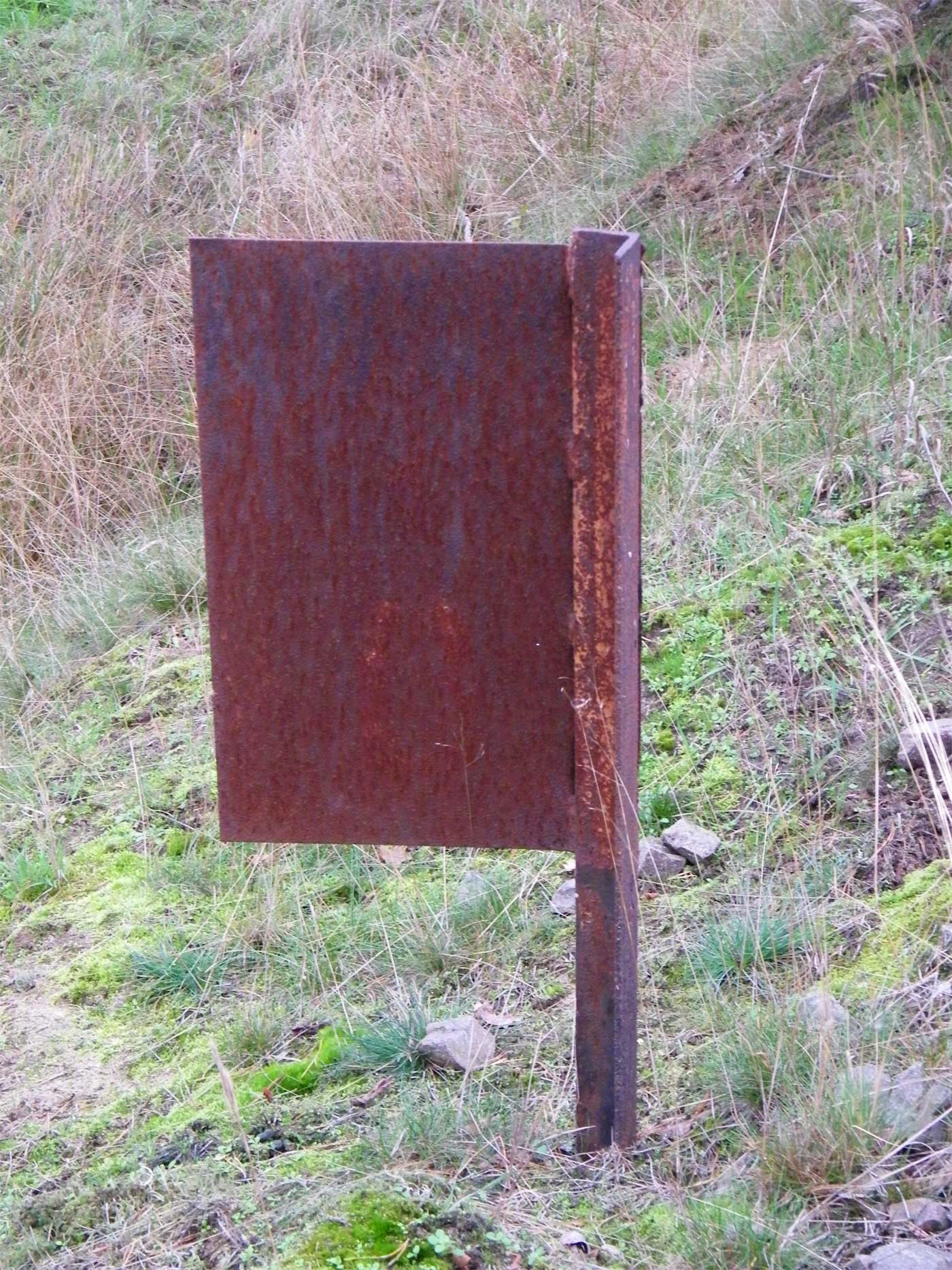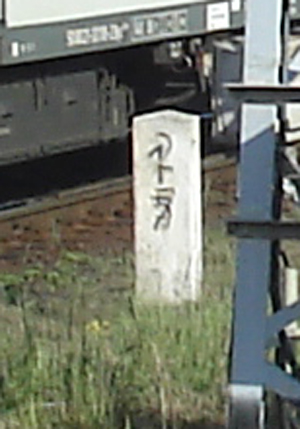 Der Stein zeigte ursprünglich km 2,5 und wurde mit km 1,7 überpinselt