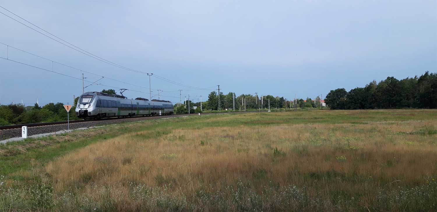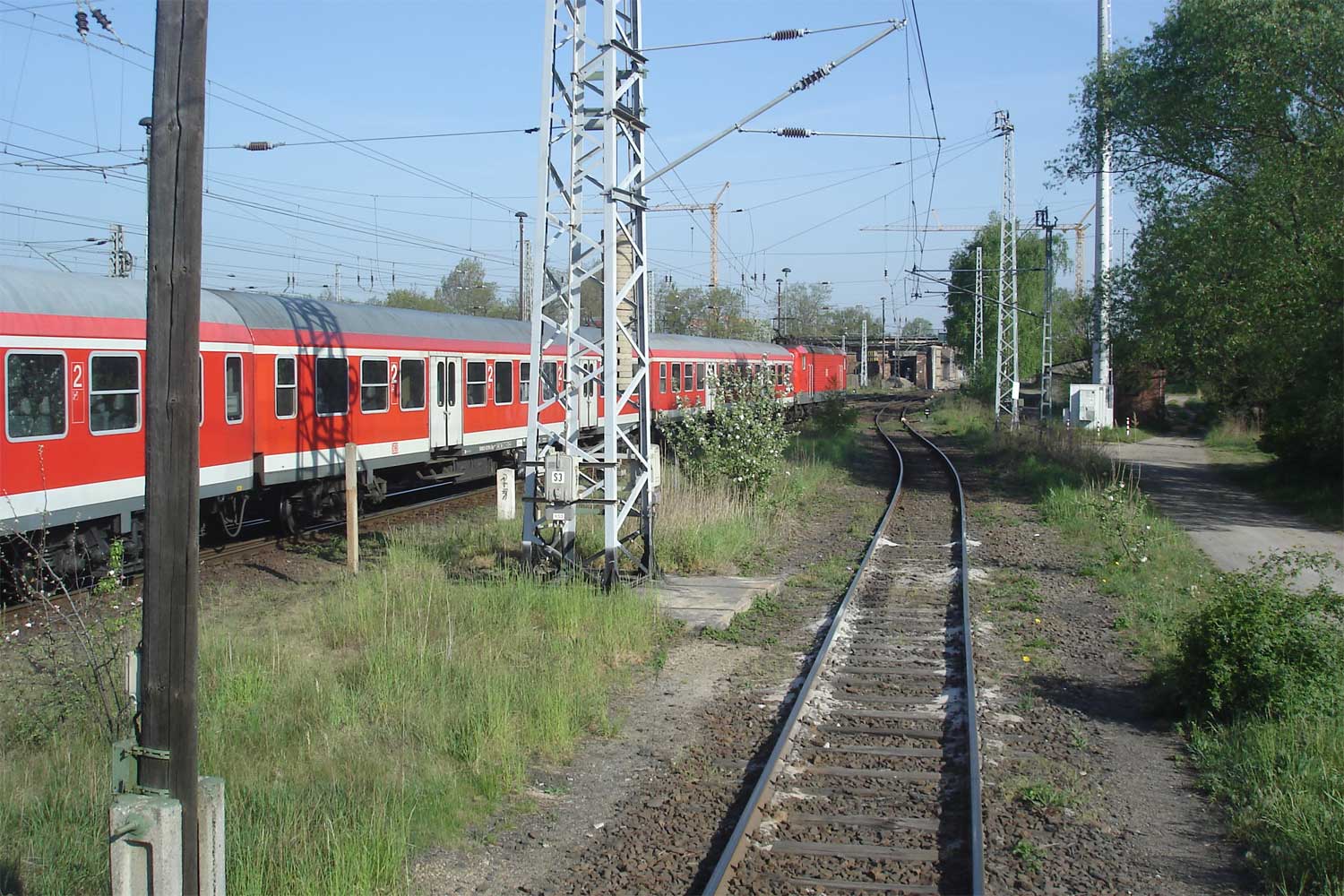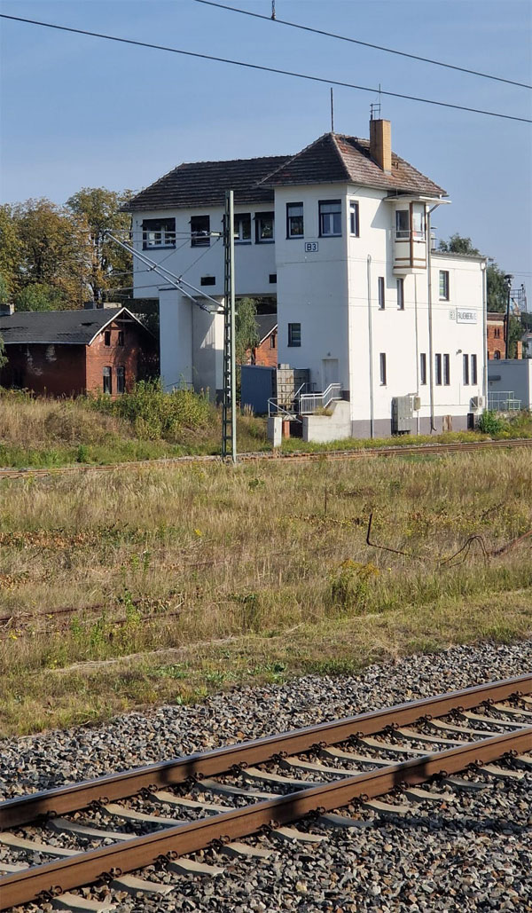 links km 95,6 der Strecke Halle (Saale) Hbf -0,31 - Eilenburg 49,27 - Falkenberg (Elster) 95,07 - Cottbus 173,86 - Guben 211,53 - Rb aus Richtung Cottbus (Guben)