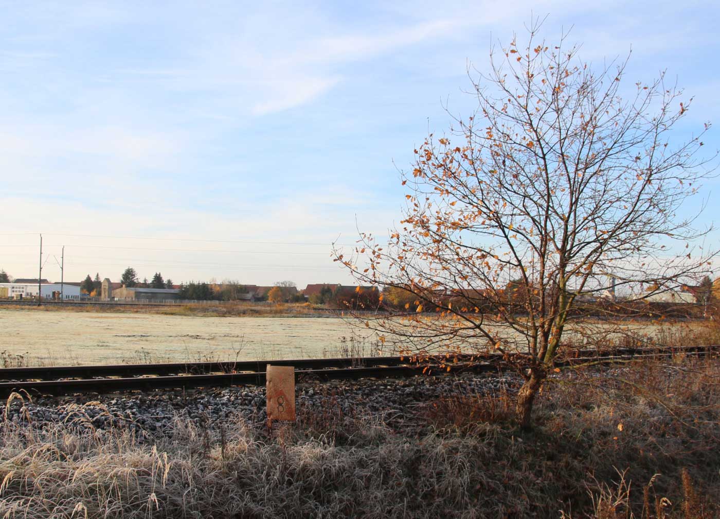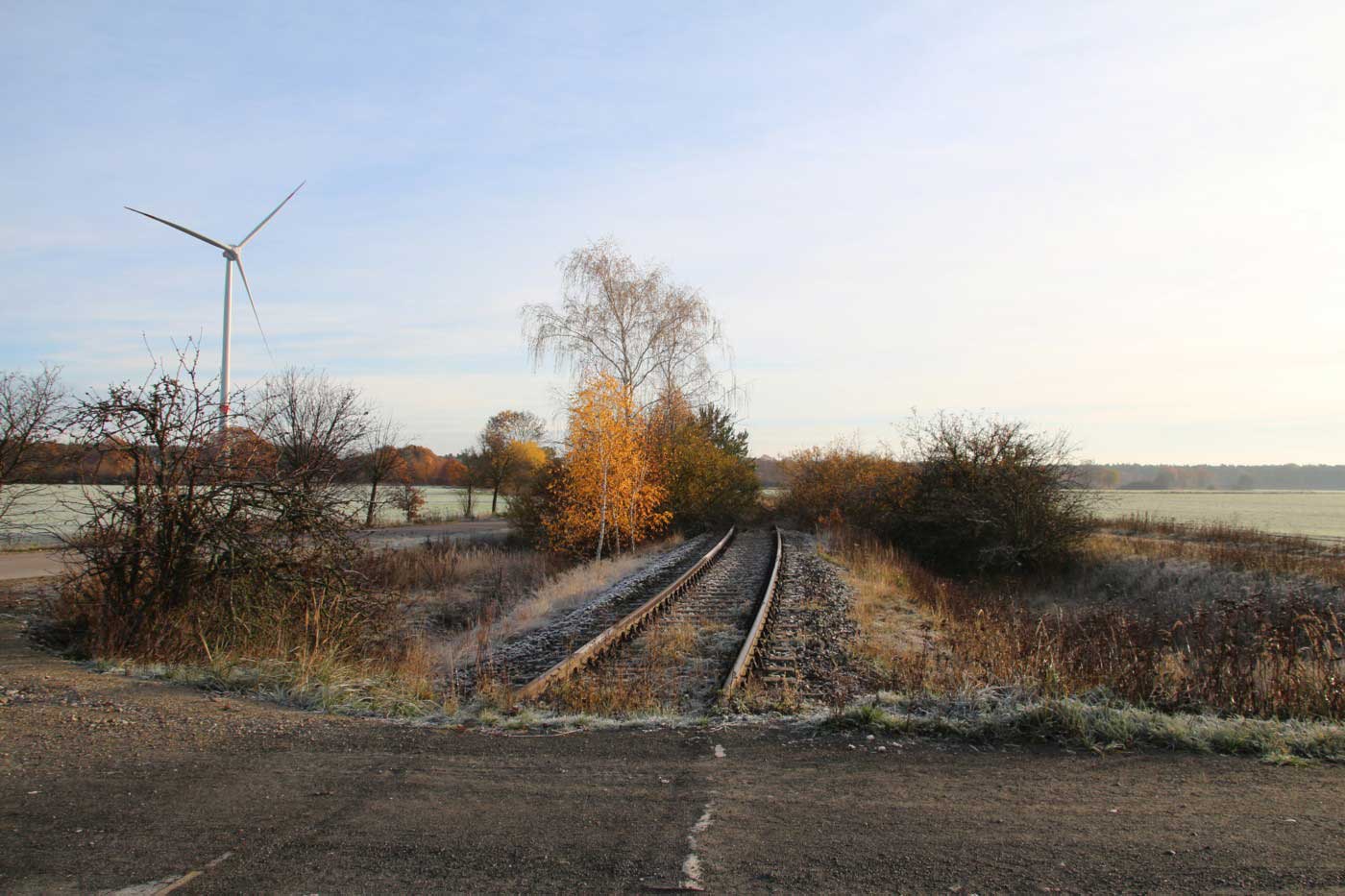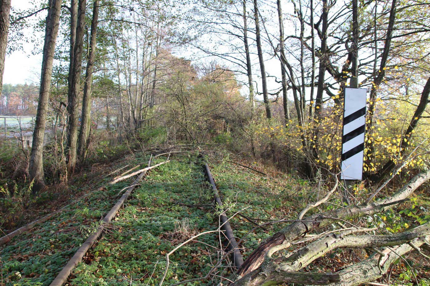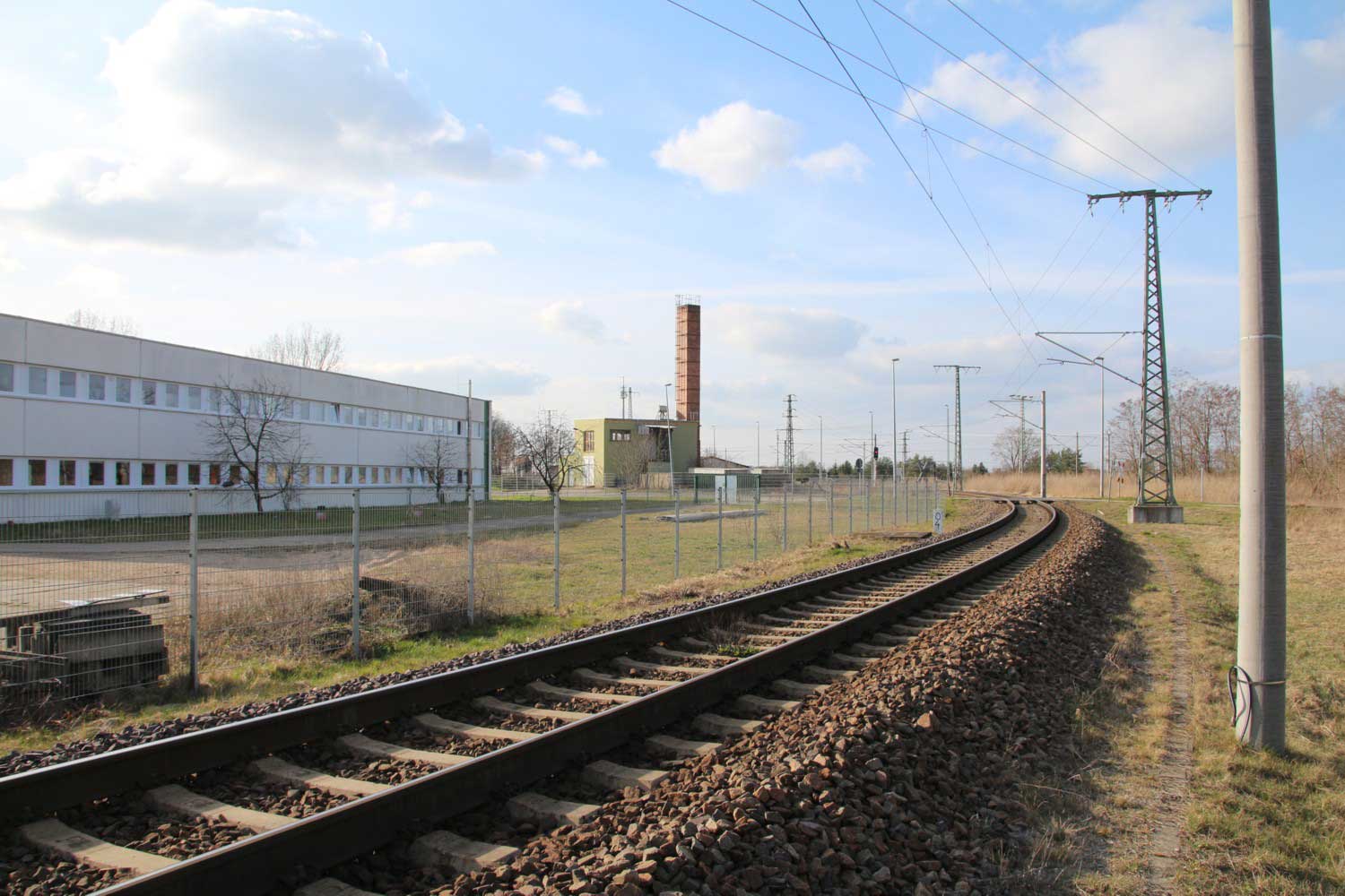 Im Hintergrund km 1,7 der Verbindungsstrecke Falkenberg (Elster), Stw W 2, W 519; km -0,021 - Weiche 2 - Weiche 3 - Falkenberg (Elster), Stw W 17, W415; km 1,714 (6845)