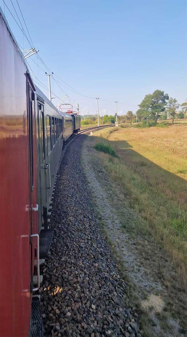 Der Zug selber befindet sich zwischen Weiche 2 und Weiche auf der Strecke