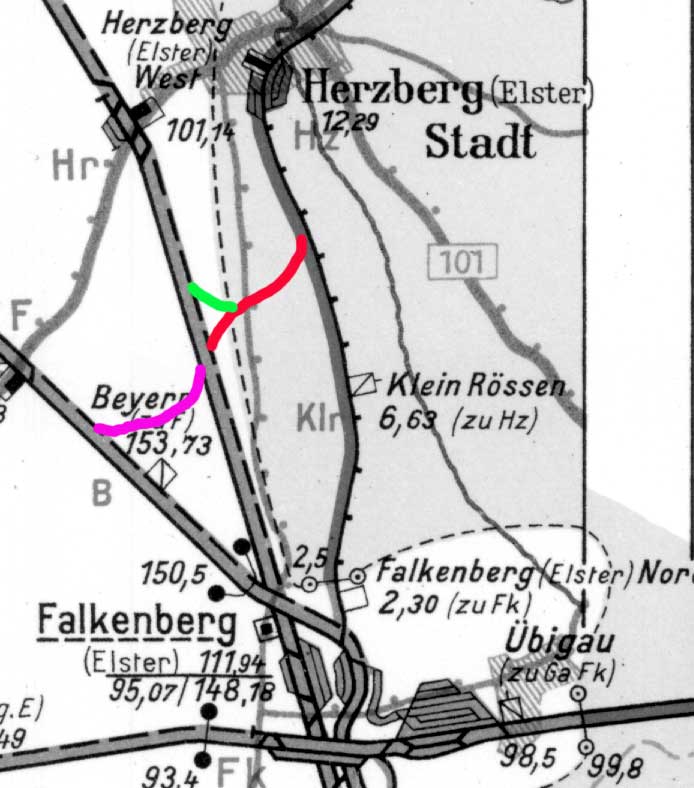 grün: Großrössen, W 2, km 2,125 - Herzberg (Elster) West, W 1, km 3,106 (6849)