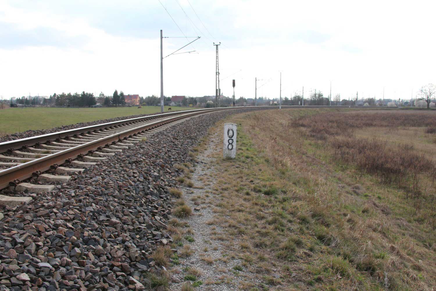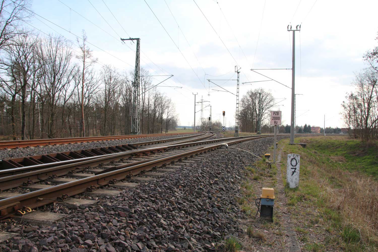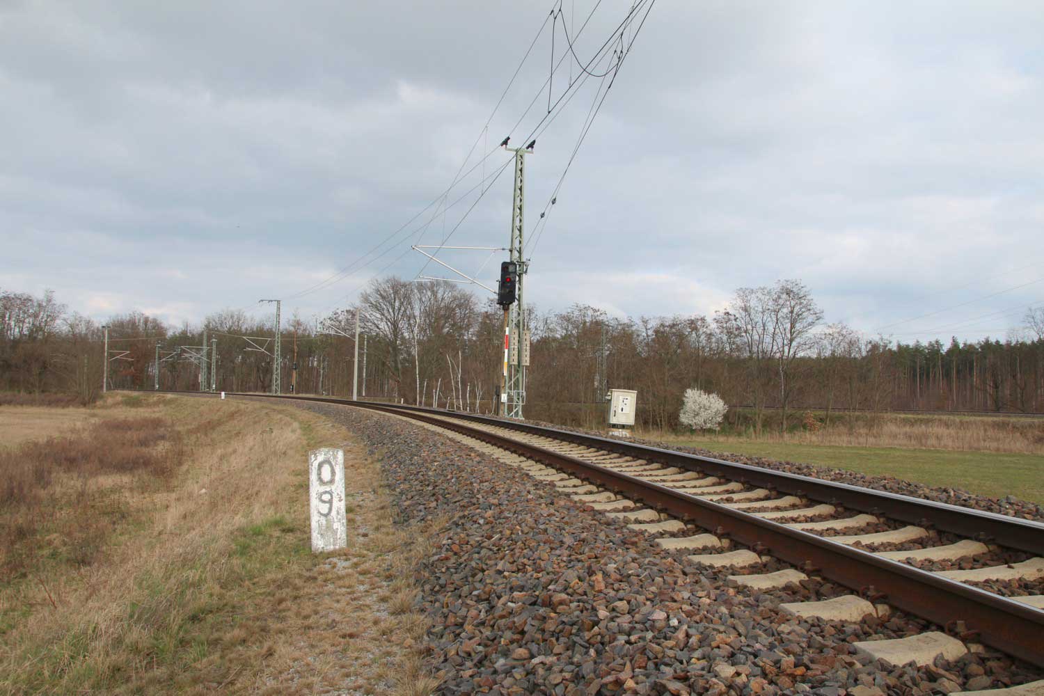 km 0,8 der Verbindungsstrecke Falkenberg (Elster), Stw B 20, W 260; km -0,102 - Stw. W 2 - [Falkenberg (Elster), Stw W 5, W 703; km 1,597] (6843)