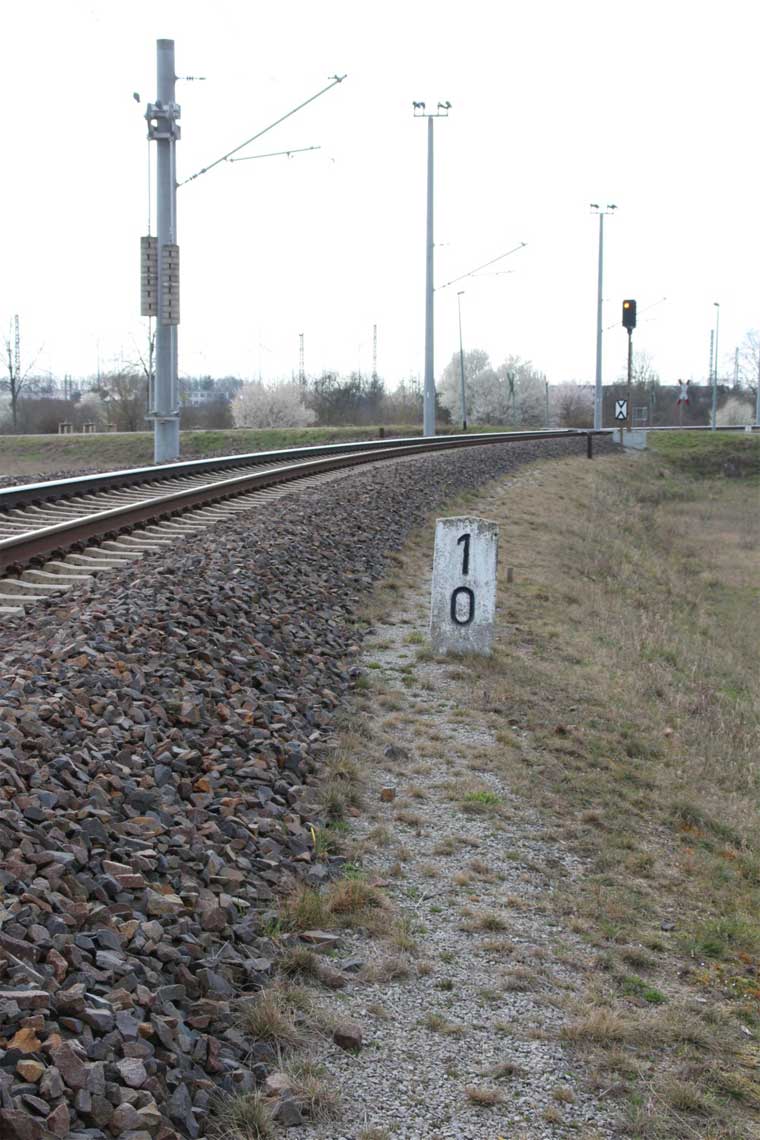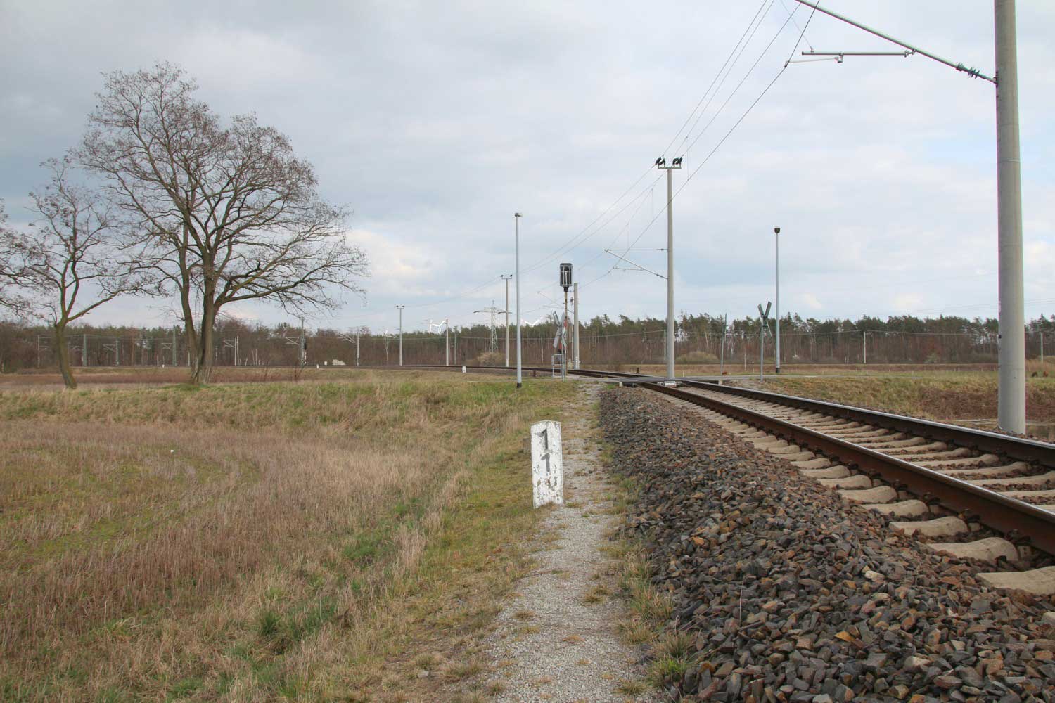 Links km 0,6 und km 0,7 der Verbindungsstrecke