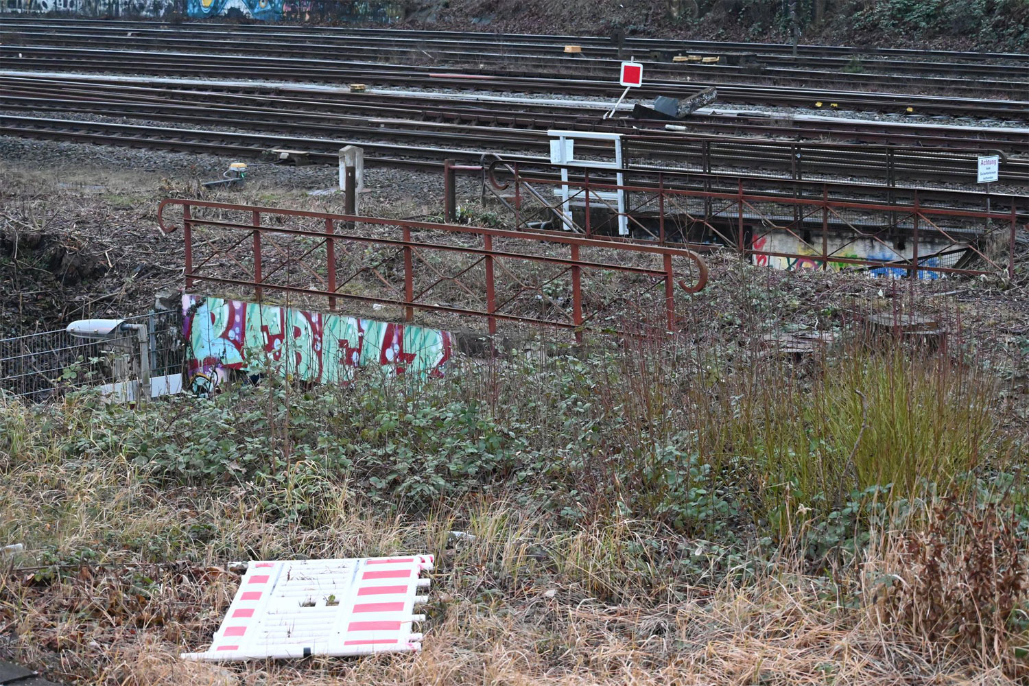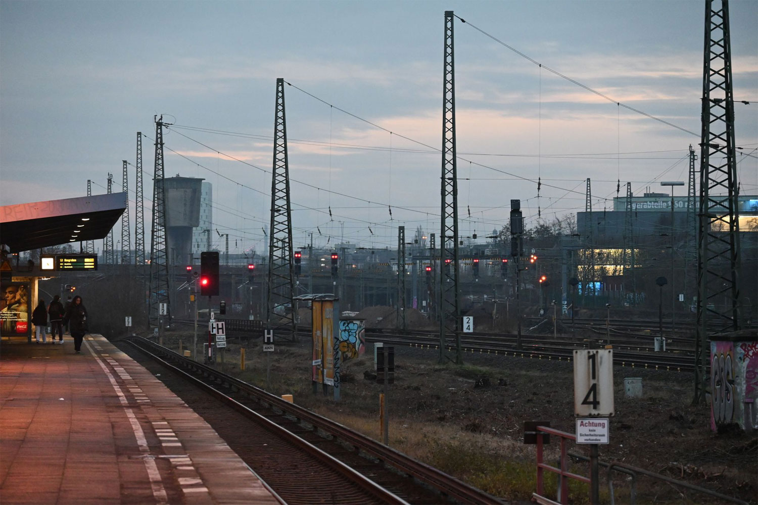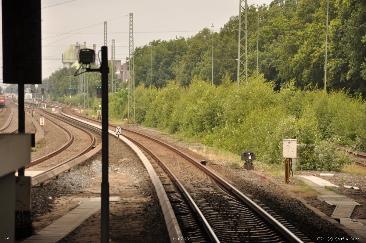 km 0,6 gehört zu den beiden links davon liegenden Gleisen der S-Bahnstrecke