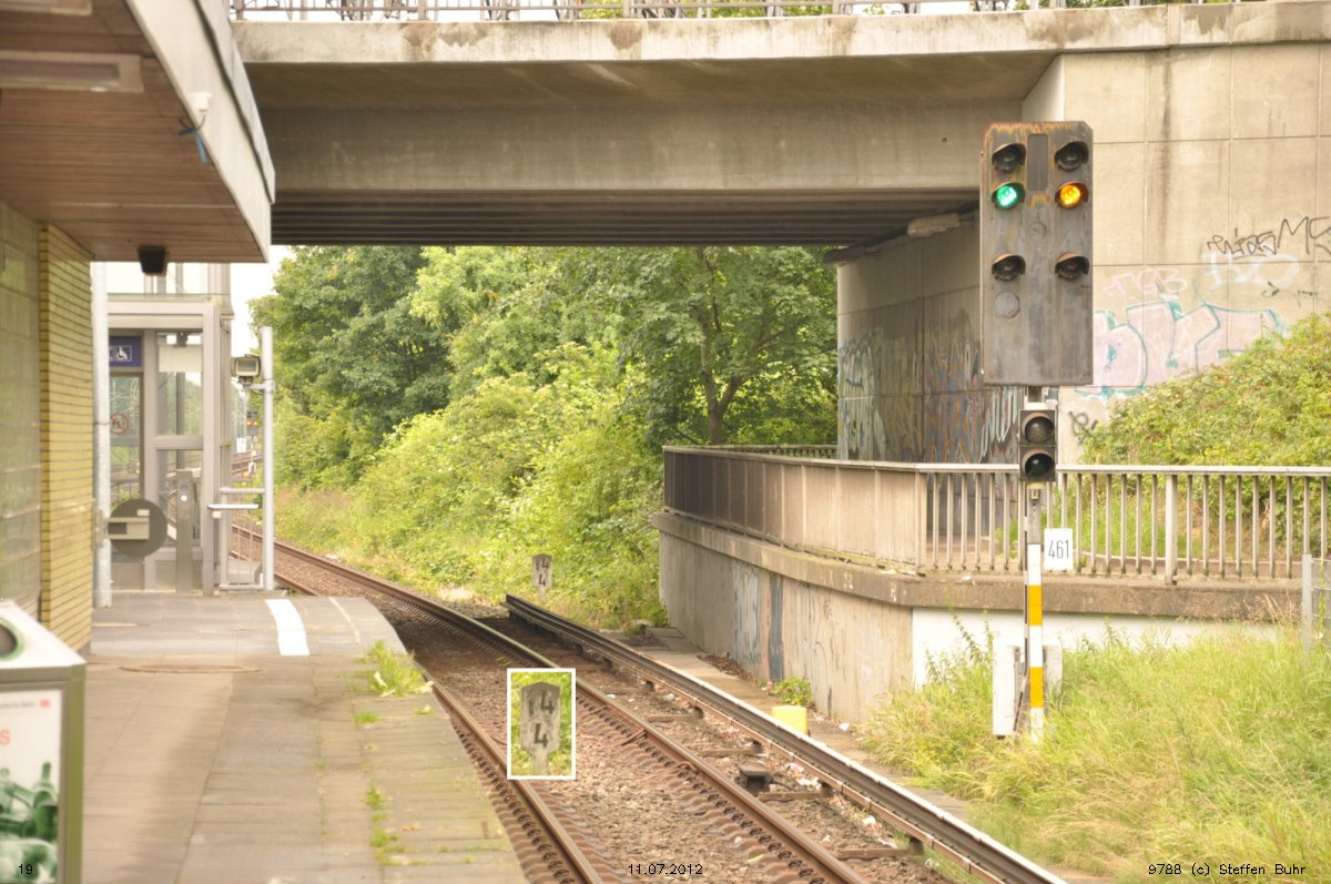 km 7,83 des Gegenrichtungsgleises der Strecke Hamburg Hbf 0,0 - Landungsbrücken 3,03 - Hamburg-Altona (S-Bahn) 5,89 - Diebsteich 7,70/7,83 (1270 - S-Bahn) | ||