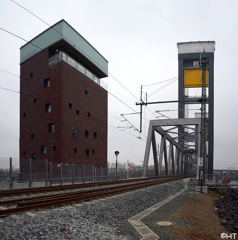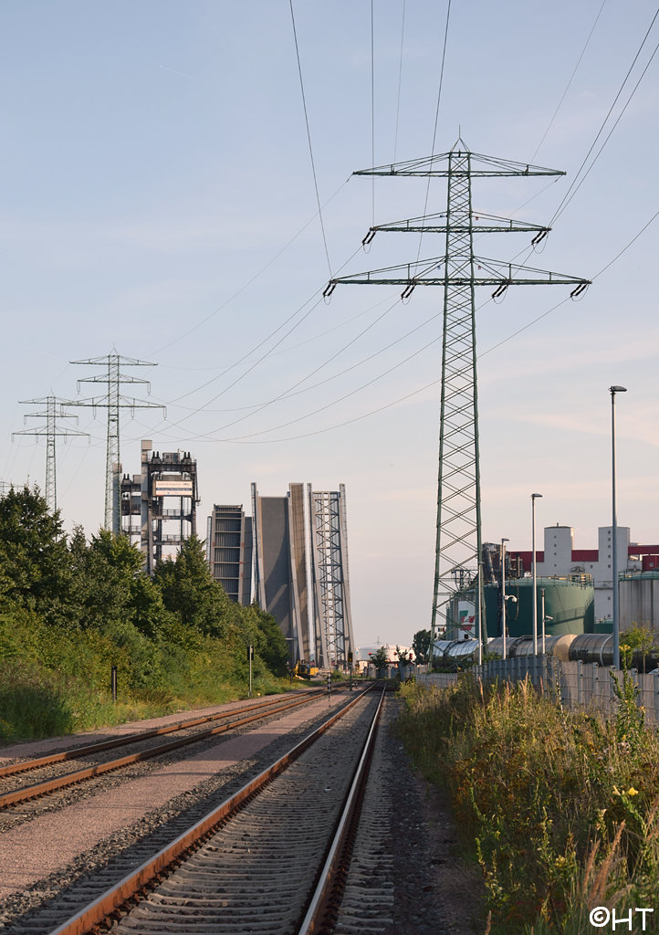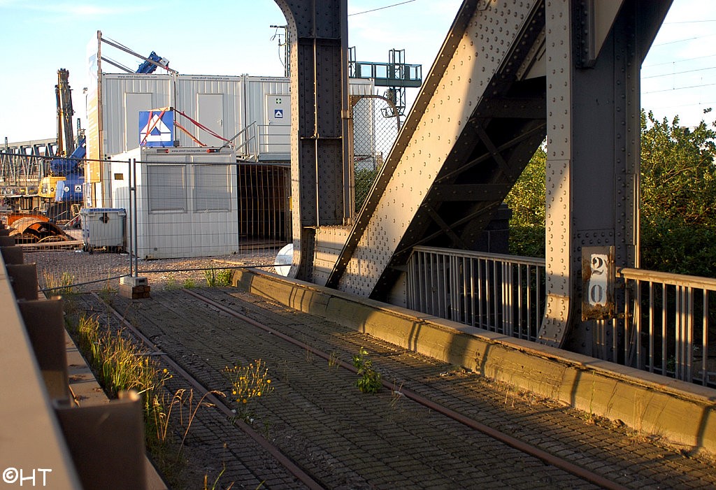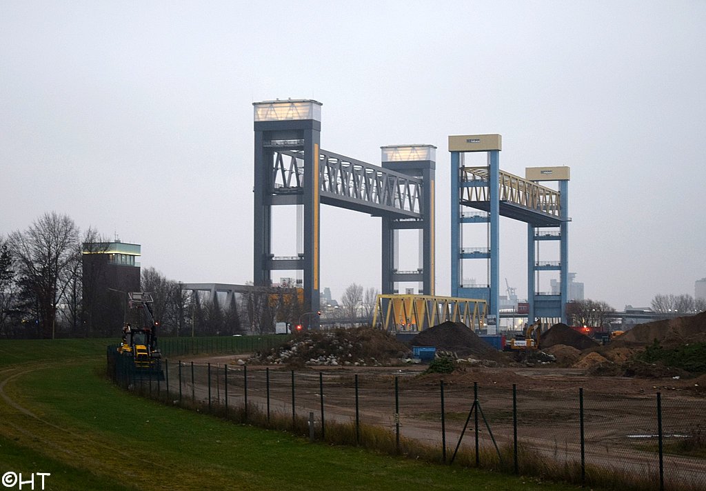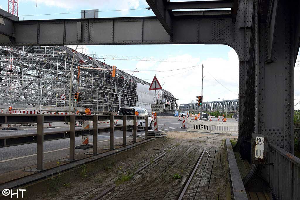 Im Hintergrund die Rethehubbrücke und die neue Retheklappbrücke