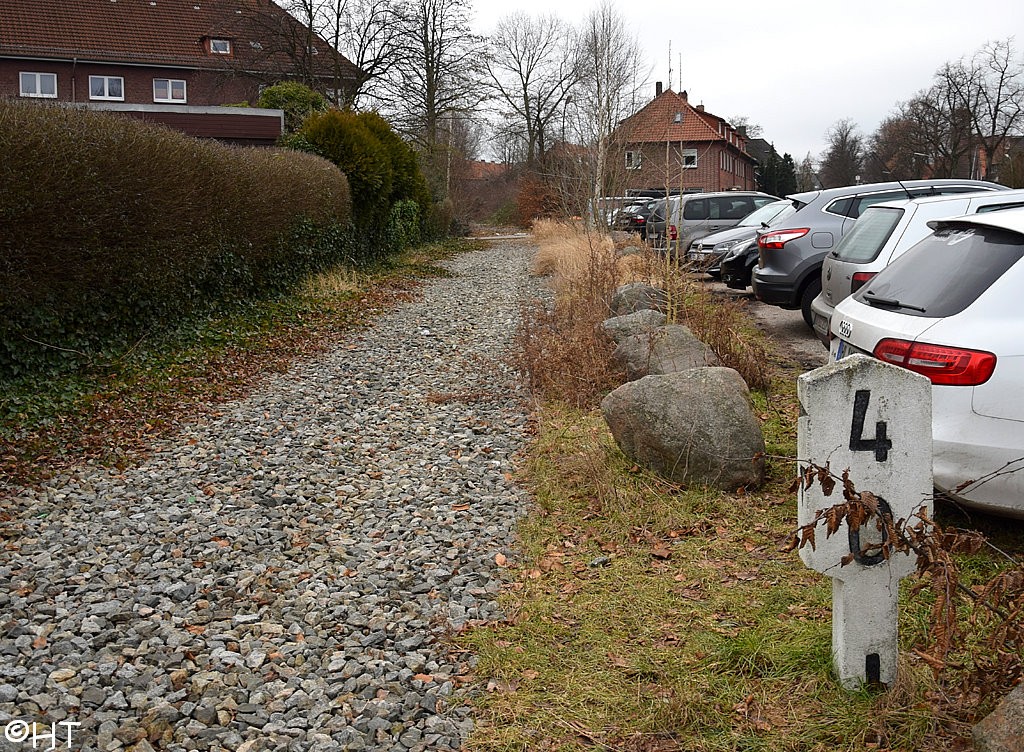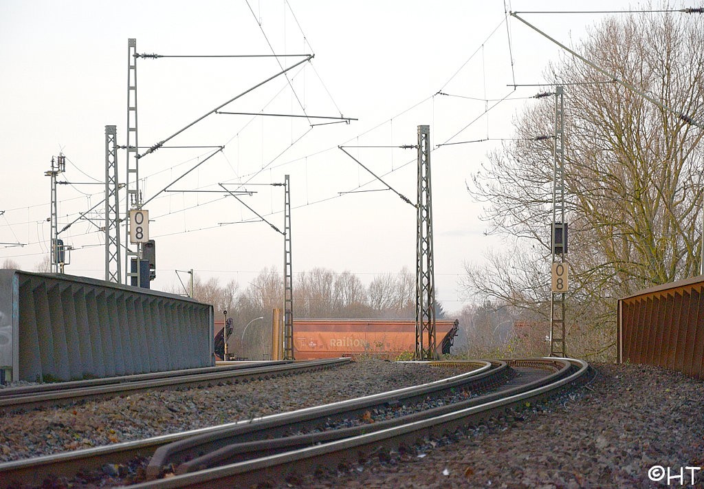 Nach dem Bahnhofsteil Pollhornweg wechselt die Kilometrierung auf REO.