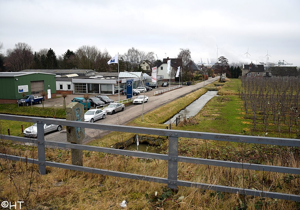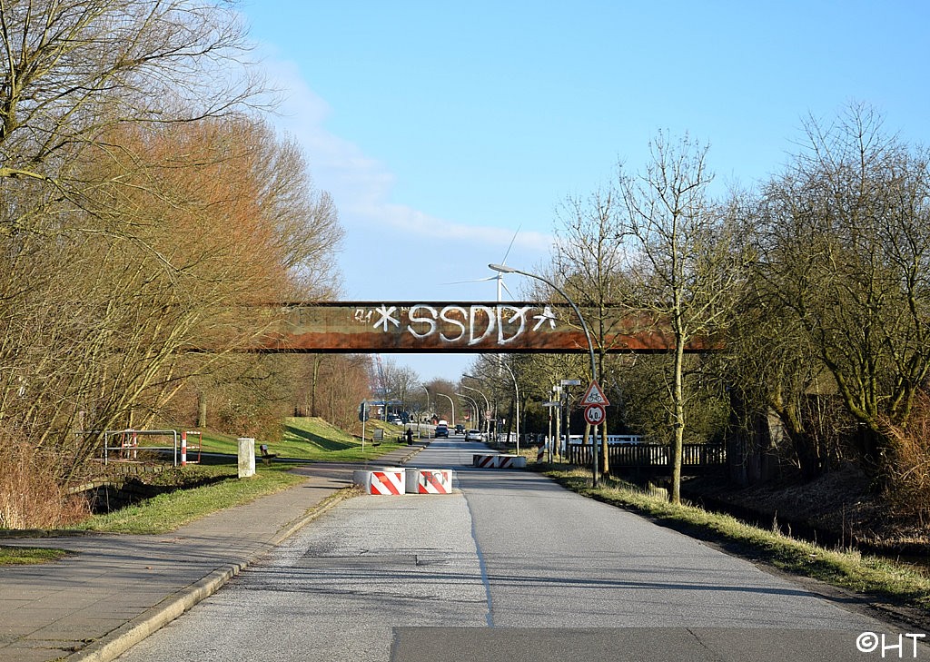 Direkt hinter der Rethe-Hubbrücke (Hohe Schaar)