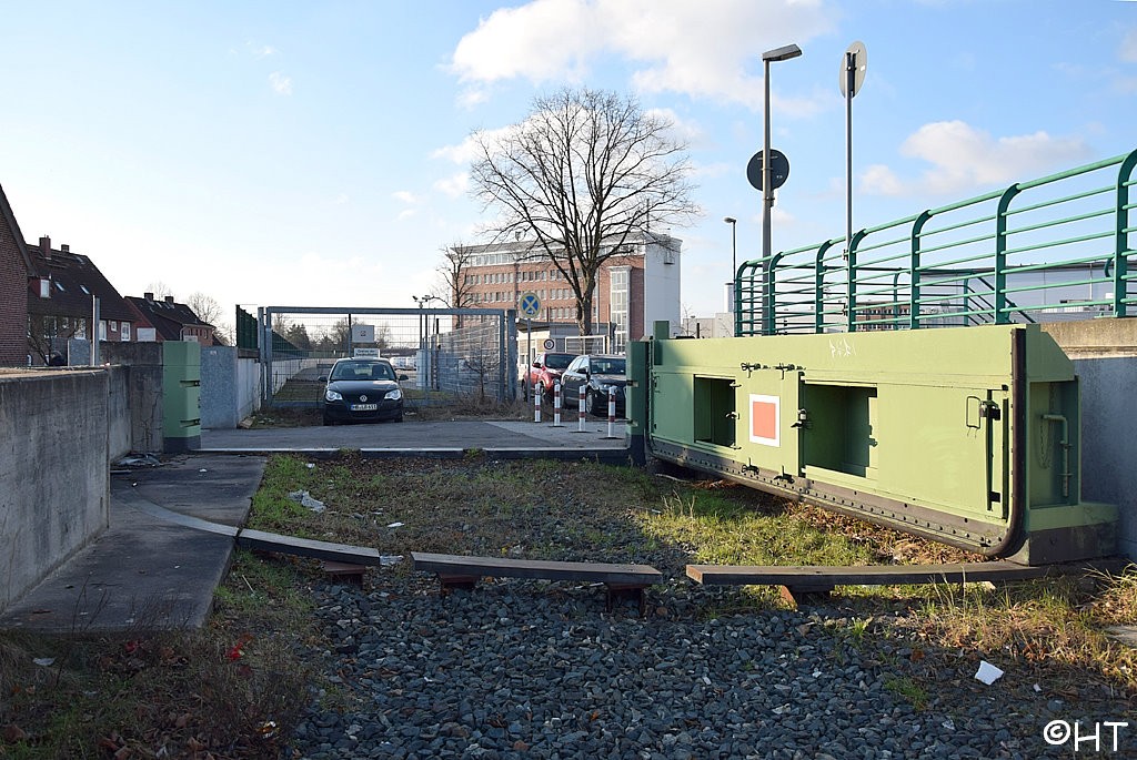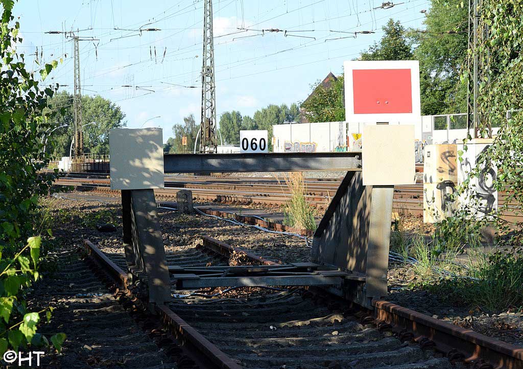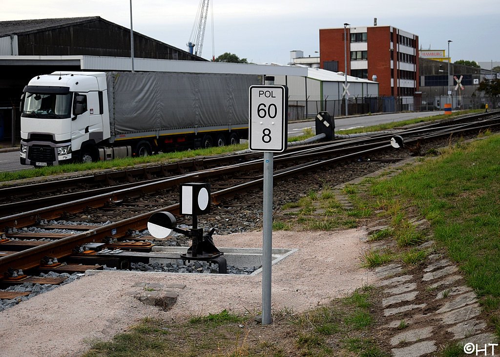 km 30,6 (rechts) gehört zur Hafenbahn Veddeler Damm, Weiche HBS 004, km 30,0 - Gleisabschluss in km 30,7 - Streckenunterbrechung - Hamburg Kai rechts