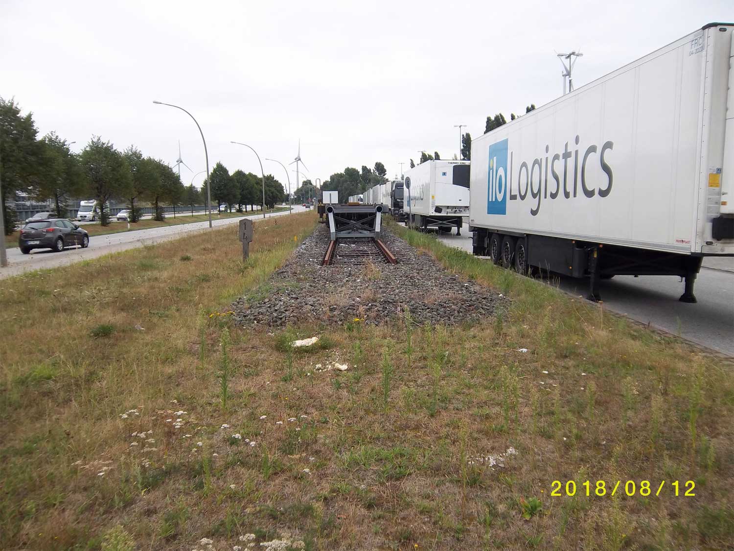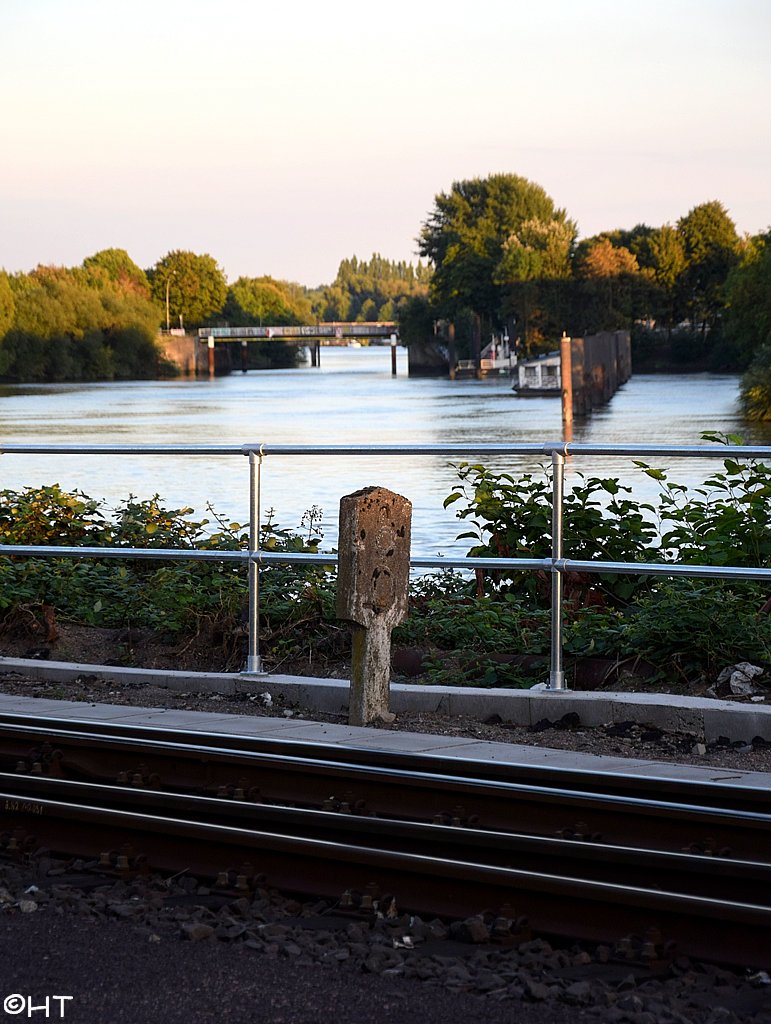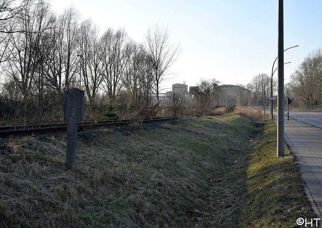 Im Vordergrund das Gleis der Hafenbahn, etwa km 30,35