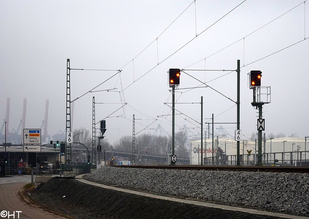 km 0,8 der Hafenbahn Ri Hohe Schaar am Abzw Hamburg Süderelbbrücke