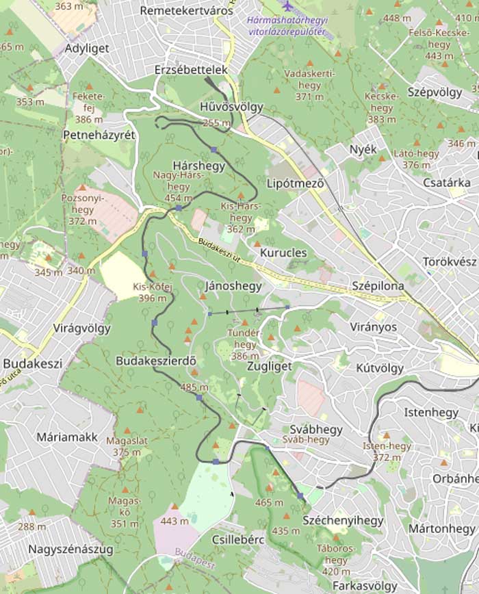 km 9,5 am Kehrtunnel zwischen Hárshegy und Hűvösvölgy