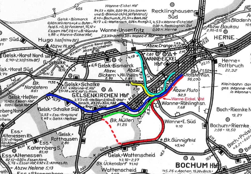 Gelsenkirchen Hbf 0,03 - Wanne-Eickel, Wst 4,00 [heute: Gelsenkirchen Hbf, W 026, km -0,16 - Wanne-Eickel Hbf, W 11, km 4,203 (2231)]