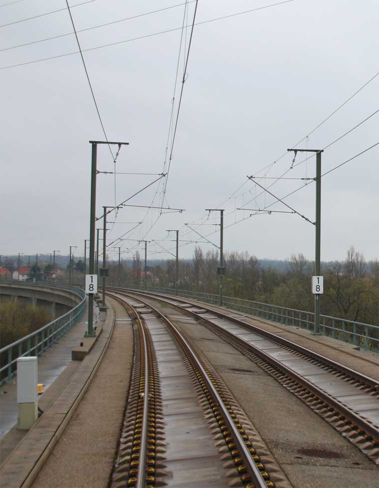 km 0,8 (Gegenrichtungsgleis) zwischen Abzw Halle-Planena und Halle Ammendorf - Blick Richtung Halle-Ammendorf