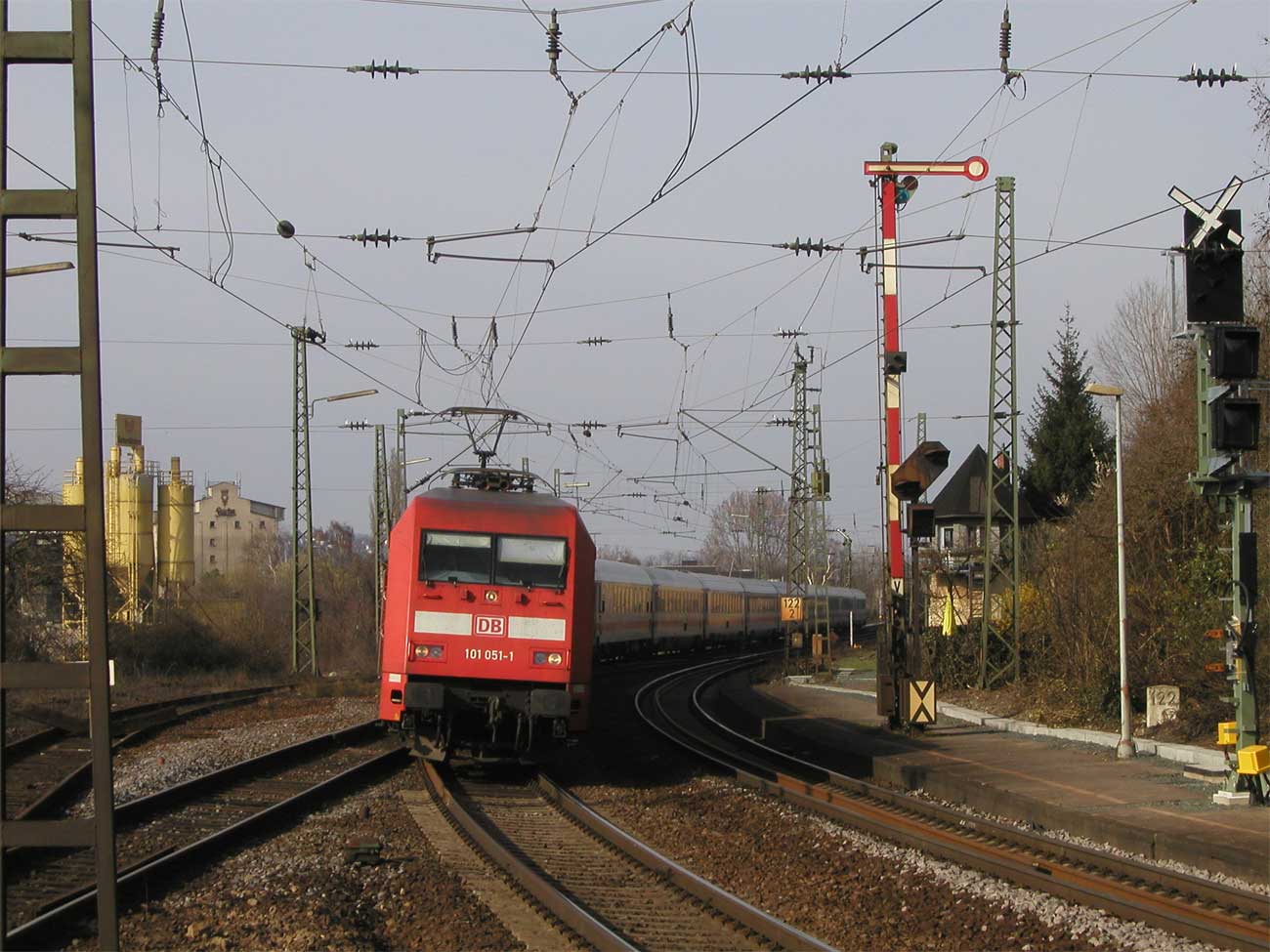 101 051 mit rechtsrheinisch umgeleiteten IC 2027