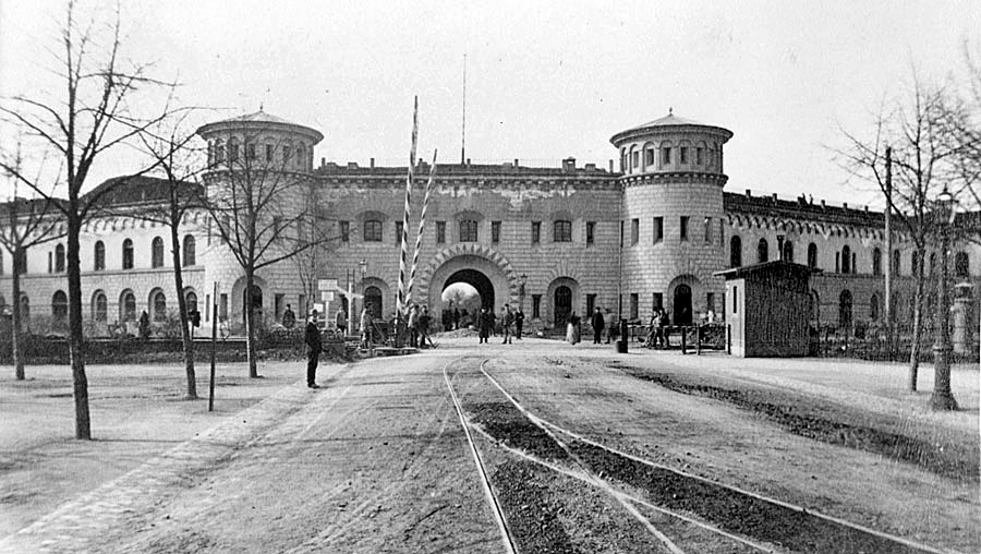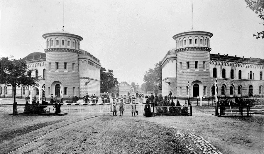Coblenz Mainzer Tor stadtseitig mit Pferdebahnstrecke und BÜ- 1890-1897
