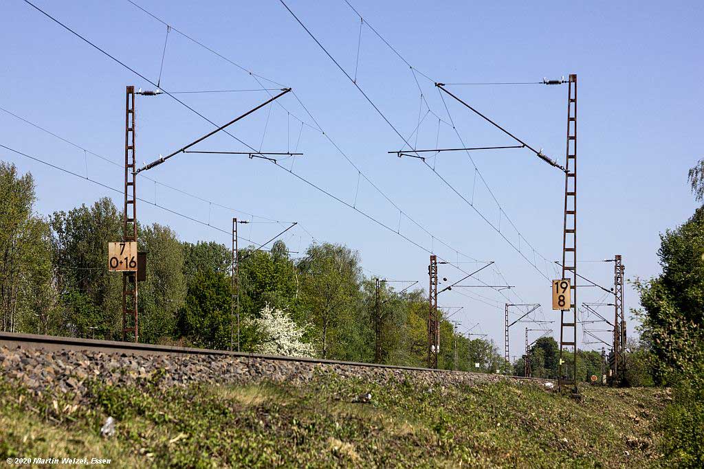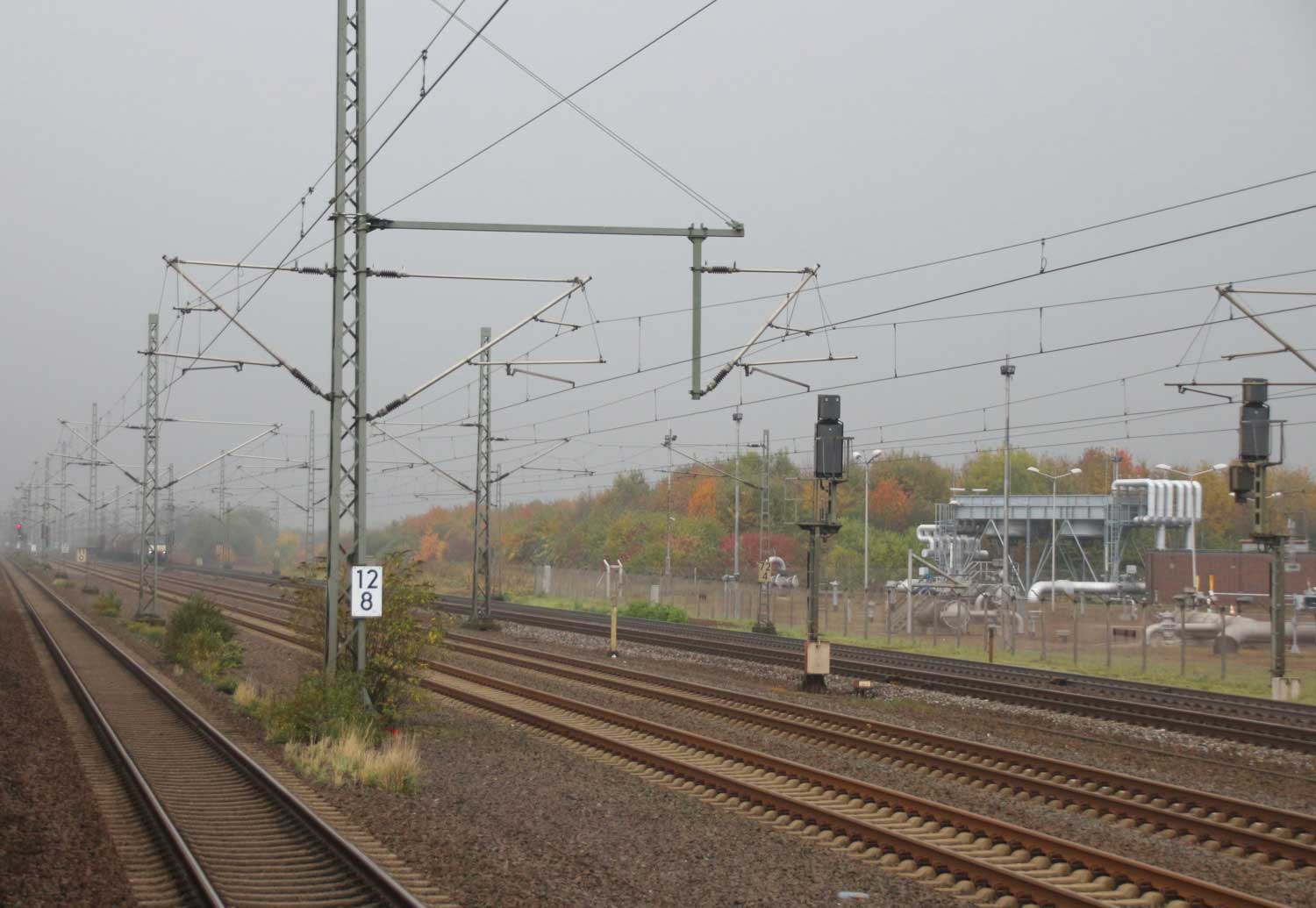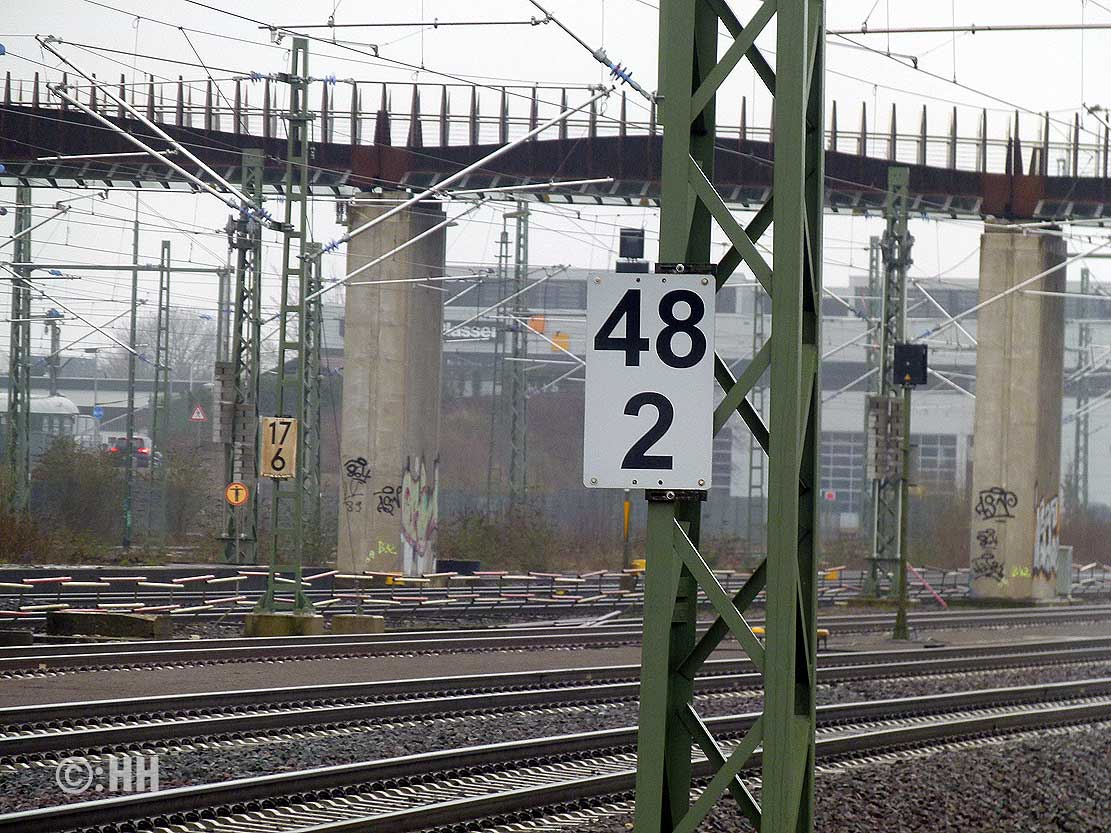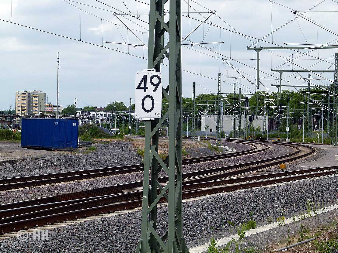 km 0,40 der Strecke Duisburg-Wedau 0,40 - Abzw. Oberbaurat Sigle 6,16 - Abzw. Mathilde 11,76 - Oberhausen Hbf 14,0 | ||